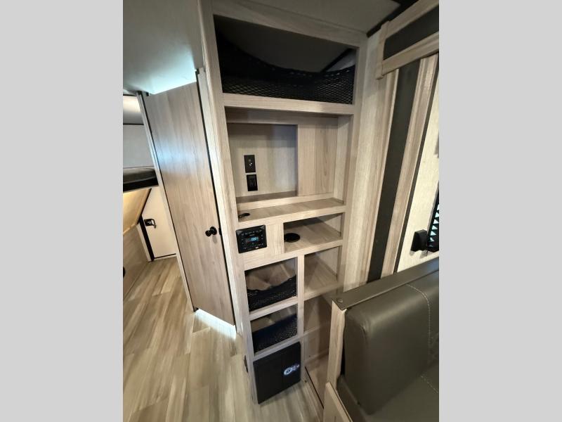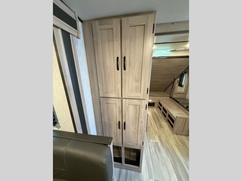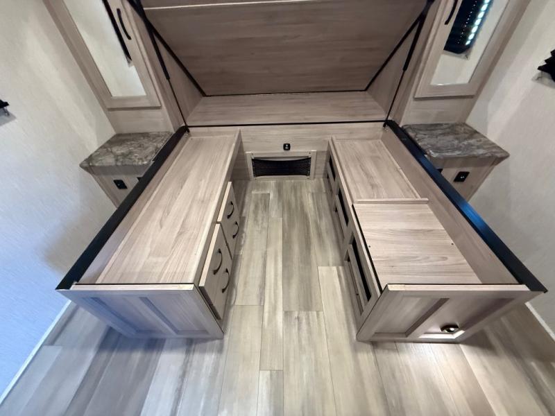 With any Northern Spirit XTR travel trailer by Coachmen you will enjoy years of use thanks to the solid construction that includes Azdel composite panels, a Tufflex PVC roof membrane, and laminated sidewalls. The panoramic front window will allow natural light in and make the area feel more open, and the "Twice Cool" dual ducted A/C unit will keep you cool during those summer camping months. Each model is pet friendly thanks to the exterior dog wash and dog leash clip, and the heated and enclosed underbelly will help extend your camping season. These travel trailers include ample storage space, including a pass-through storage with a motion activated light and Max Bed Storage on all models except 2146BHX that includes a versatile Murphy bed instead. Enjoy a little eXTRa with the Northern Spirit XTR travel trailers!