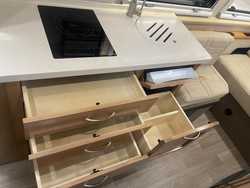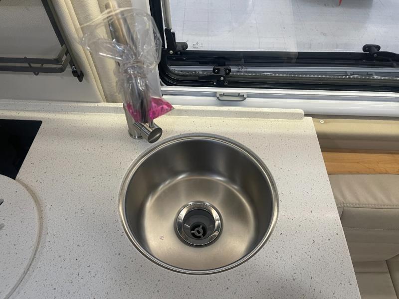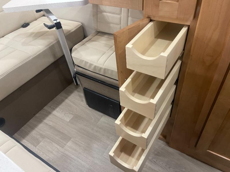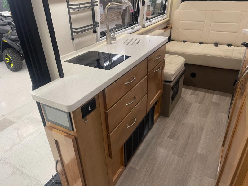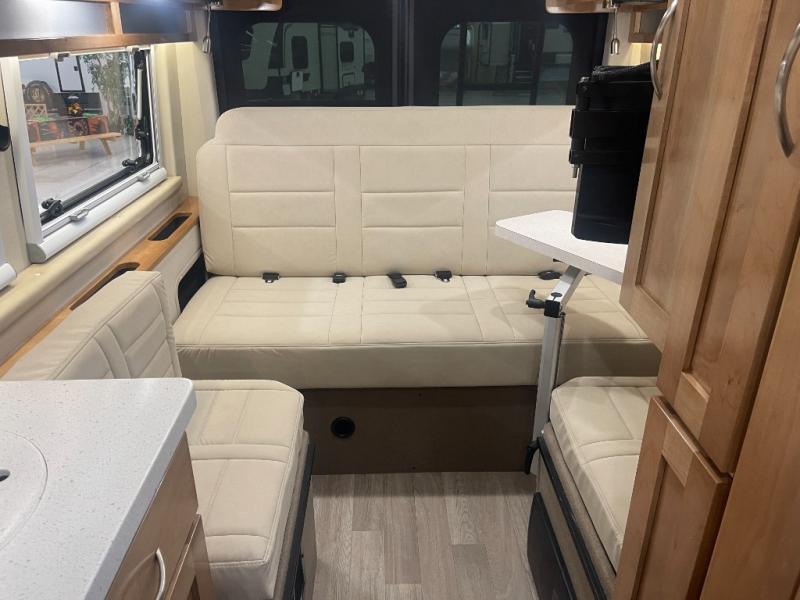 Grab your honey and head to your favorite camping spot in this cozy camper van. Once you park for the day, you can swivel the captain's seats around and enjoy coffee with the removable cockpit table. Lunch can be made on the two burner LP cooktop, and the cold ingredients can go back in the 7.4 cu. ft. refrigerator/microwave. The convenient wet bath allows you to freshen up after a hike, and the rear lay-flat power sofa will provide comfortable sleeping space when you're ready to turn in for the night. There are also two jump seats and a lagun table if you want to say up and play a game of cards!