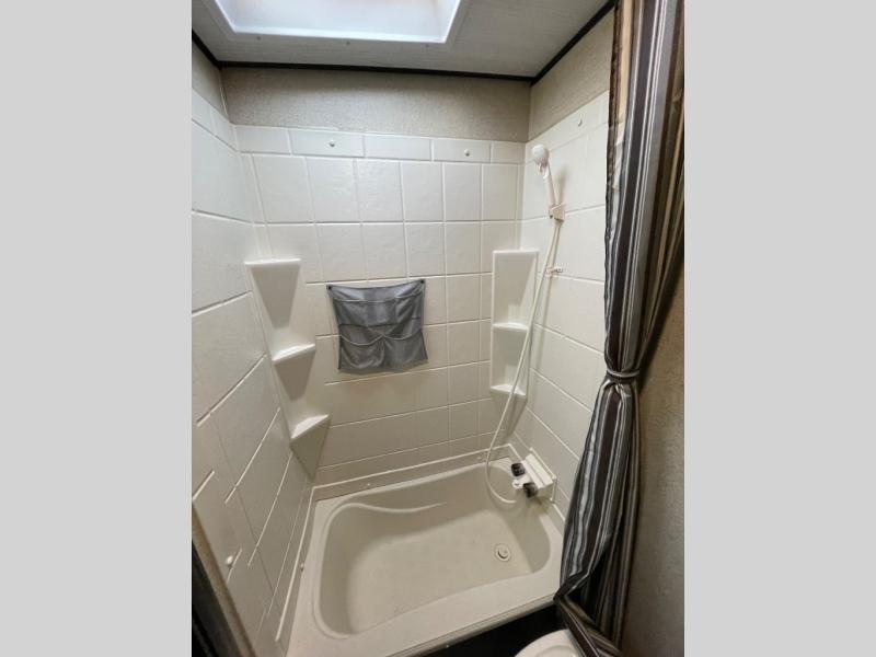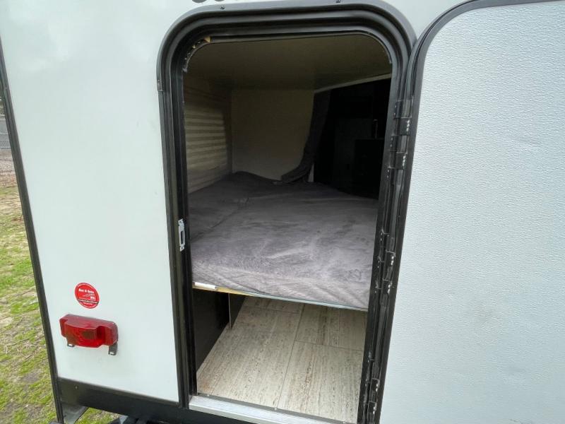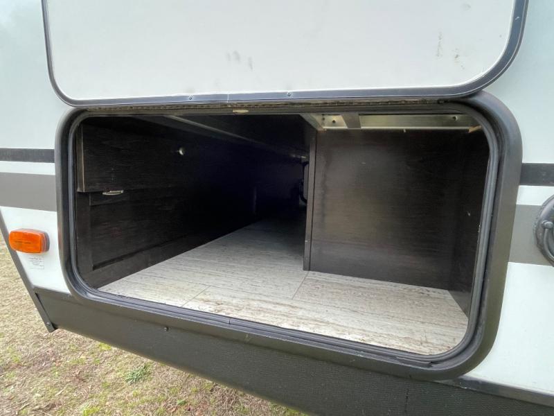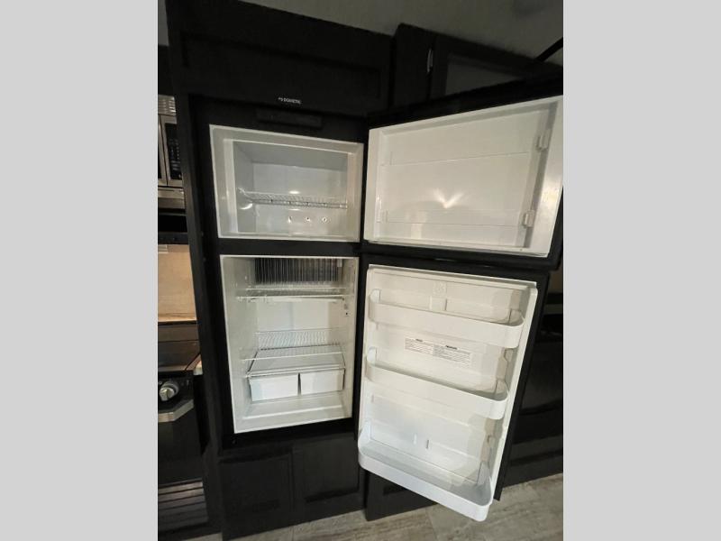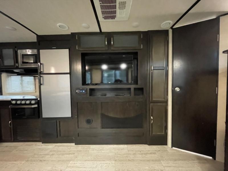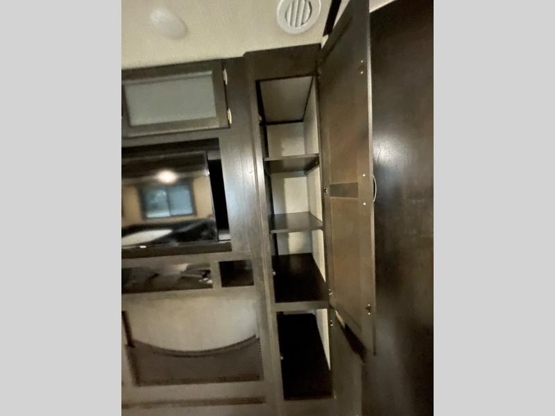 You'll be able to use this Spirit Ultra Lite travel trailer for all sorts of adventures, whether it's a weekend trip with friends, a month-long journey to see extended family, or everything else in between. There is a large slide that holds the sofa and U-shaped dinette, and the pet center is at the base of the dinette. The pantry will hold your favorite snacks while the 10-cubic foot refrigerator stores your juices and milk. The entertainment center with hutch is directly across from the sofa and dinette for easy viewing, and the full bathroom contains the second exterior entry door for quick access while outside cooking at the camp kitchen. When you enter through the main entry door, you'll find a tool center directly to your left.