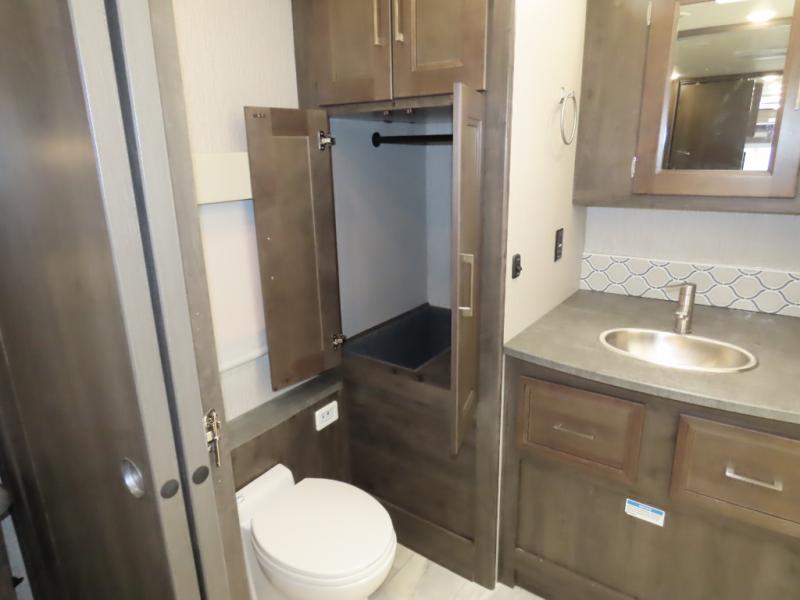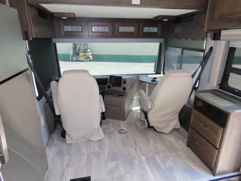 The Sportscoach SRS Class A diesel motorhome by Coachmen sits on a straight rail Freightliner chassis with a 340 HP ISB Cummings rear diesel engine that will deliver power to your excursions. Each coach features chassis air suspension and air brakes, an 8,000 lb. towing hitch, and an outside entertainment center with a 40" TV to watch the big game outdoors. Some of the electrical, heating, and AC amenities you will appreciate are the 6.0 kW diesel generator, the 100 watt solar panel with a controller, and the two 15,000 BTU A/C units. The galley features convenient pop-up recept with USB ports, stylish kitchen backsplash, and a stainless steel farmhouse style sink that will make clean-up easier than ever. Comfort will come easy with the upgraded mattress in the bedroom, along with a residential style headboard and a king bed. Affordable, powerful, and comfortable; what's not to love about the Sportscoach SRS Class A diesel coach!