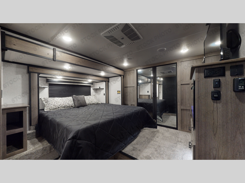 Every element of your home has been considered when creating these CrossRoads RV Cameo fifth wheels! From the oversized pantries, master suites, and full size theater seats with heat and massage to durable construction with the largest I-beam chassis in the industry. They also have the industry's first front windshield, an aerodynamic profile, and a full walk-on roof with an Alpha Ply II roof material. These modern fifth wheels were created with the customer in mind which is why they have convenient features like pass-through heated storage, spacious walk-in closets, an AM/FM/Bluetooth sound bar, a 6-point hydraulic auto level, and a 2" receiving hitch with 4-way plug. The Twice Is Nice package adds even more comforts like dual fireplaces for cozy evenings inside, dual awnings to protect you rain or shine, dual A/C units to keep you cool on those hot summer days, and dual wireless charging stations so your electronics can be at 100%. Come find the right model for you!