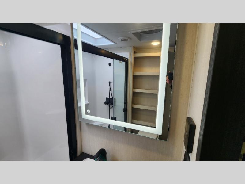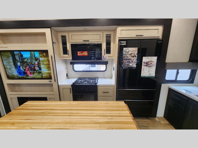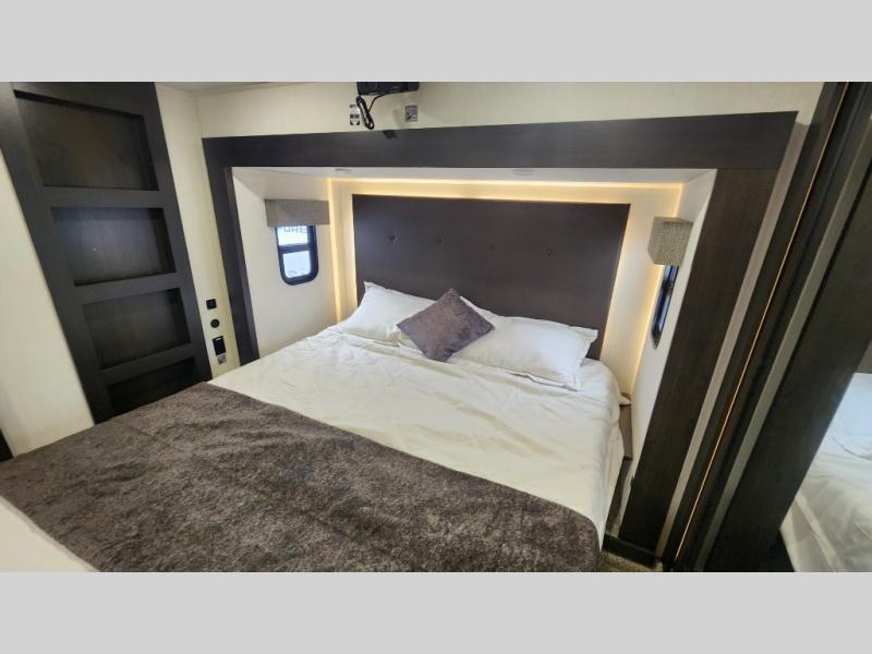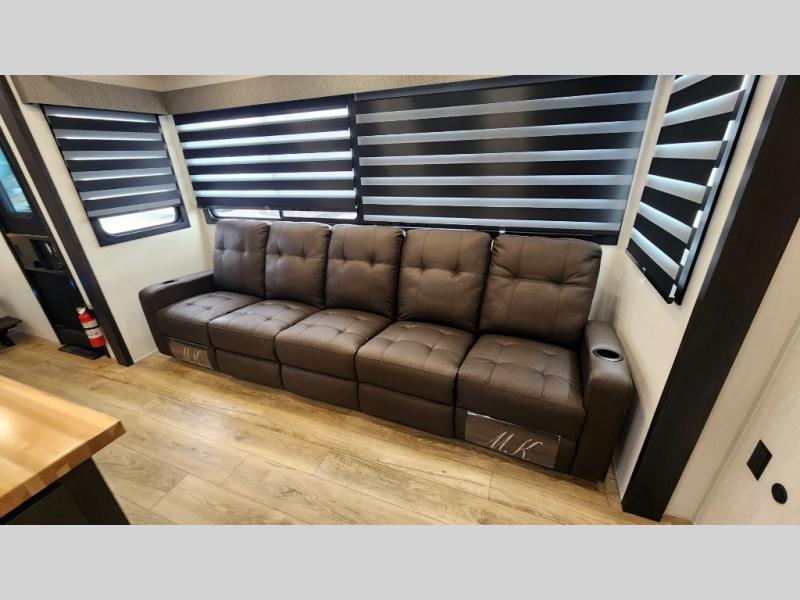 Every element of your home has been considered when creating these CrossRoads RV Cameo fifth wheels! From the oversized pantries, master suites, and full size theater seats with heat and massage to durable construction with the largest I-beam chassis in the industry. They also have the industry's first front windshield, an aerodynamic profile, and a full walk-on roof with an Alpha Ply II roof material. These modern fifth wheels were created with the customer in mind which is why they have convenient features like pass-through heated storage, spacious walk-in closets, an AM/FM/Bluetooth sound bar, a 6-point hydraulic auto level, and a 2" receiving hitch with 4-way plug. The Twice Is Nice package adds even more comforts like dual fireplaces for cozy evenings inside, dual awnings to protect you rain or shine, dual A/C units to keep you cool on those hot summer days, and dual wireless charging stations so your electronics can be at 100%. Come find the right model for you!