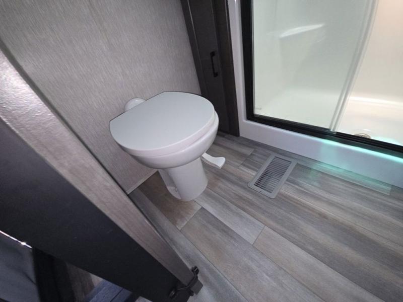 Start cruising through the campgrounds in one of these CrossRoads RV Cruiser fifth wheels! Their heated enclosed underbelly and easy winterization bypass allow you to camp longer into the year. The aerodynamic painted fiberglass cap limits wind resistance, and when you need to clean off the walk-on roof you will appreciate having the ladder that leads to it. You can even secure your bikes to the bike rack and speaking of secure there are secure stance steps to help you safely exit and enter the unit. Two 15,000 BTU air conditioners keep the interiors nice and cool, plus the exterior reflective heat barrier aids in keeping it even cooler. There is entertainment throughout when mother nature rains on your parade between the CD/DVD player with HDMI, the LED TV, the USB ports to charge your tablets, and the Wi-Fi prep. Come find your favorite model today!