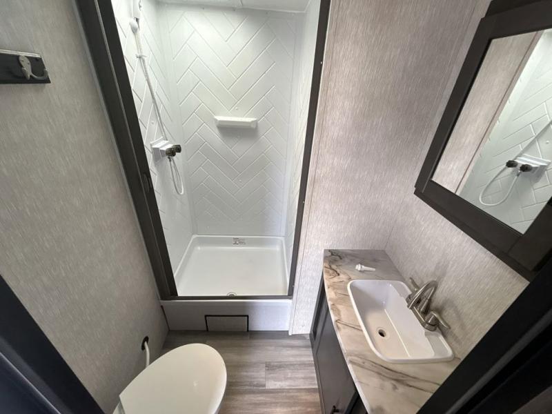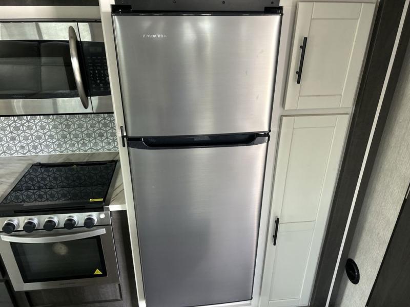 Each one of these CrossRoads RV Cruiser Aire fifth wheels and travel trailers have high end features incorporated into them! Some of these features include a Secure Stance entry step, pass-through storage with magnetic slam latch doors to keep your gear stored safely, and electric awnings with LED lights to highlight the good times at night. Their construction consists of a one piece seamless super flex roof, a five sided aluminum construction, and an aerodynamic painted front cap for an easier tow. Stay connected where ever you go with the HD digital TV antenna with Winegard Wifi prep. The luxurious interiors are filled with at home comforts like Chef Collection appliances, full trunk storage under the king bed, and fireplaces depending on the model. Come find the perfect one for you and your family today!