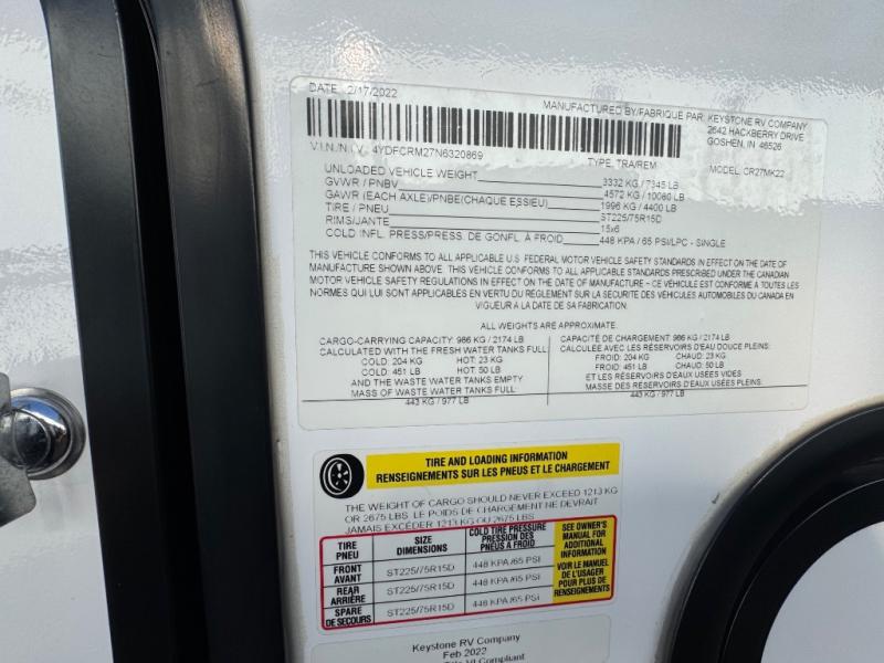 Used 2022 CrossRoads RV Cruiser Aire CR27MK Fifth Wheel