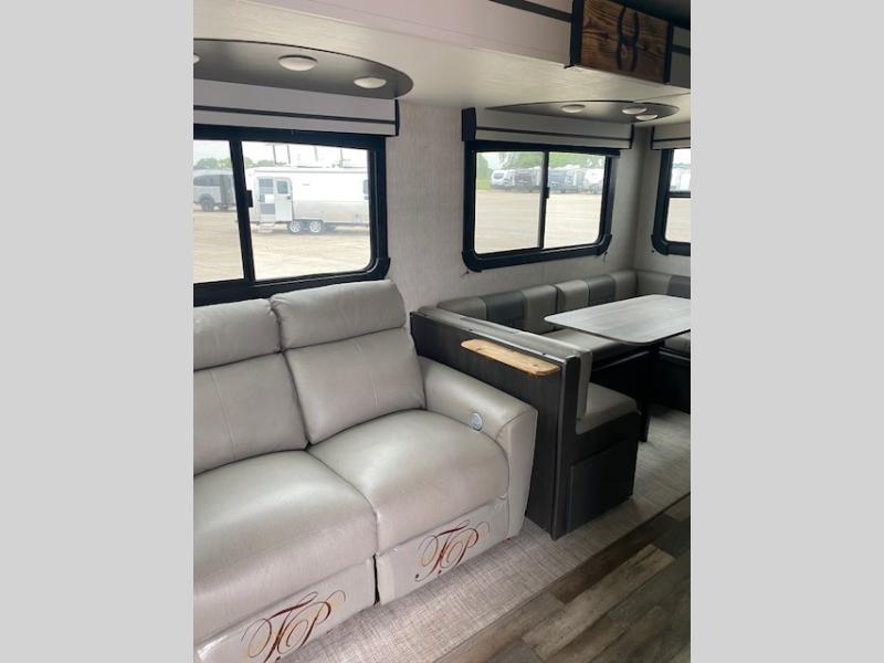 Each one of these CrossRoads RV Cruiser Aire fifth wheels and travel trailers have high end features incorporated into them! Some of these features include a Secure Stance entry step, pass-through storage with magnetic slam latch doors to keep your gear stored safely, and electric awnings with LED lights to highlight the good times at night. Their construction consists of a one piece seamless super flex roof, a five sided aluminum construction, and an aerodynamic painted front cap for an easier tow. Stay connected where ever you go with the HD digital TV antenna with Winegard Wifi prep. The luxurious interiors are filled with at home comforts like Chef Collection appliances, full trunk storage under the king bed, and fireplaces depending on the model. Come find the perfect one for you and your family today!