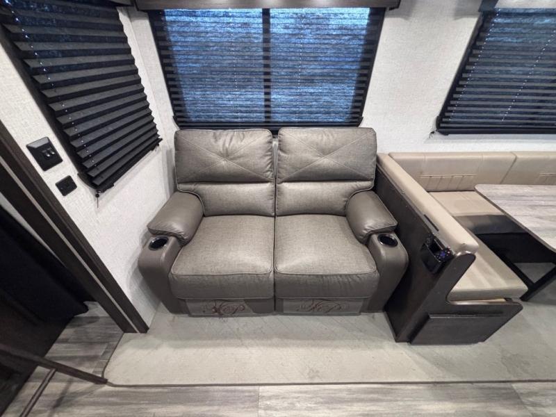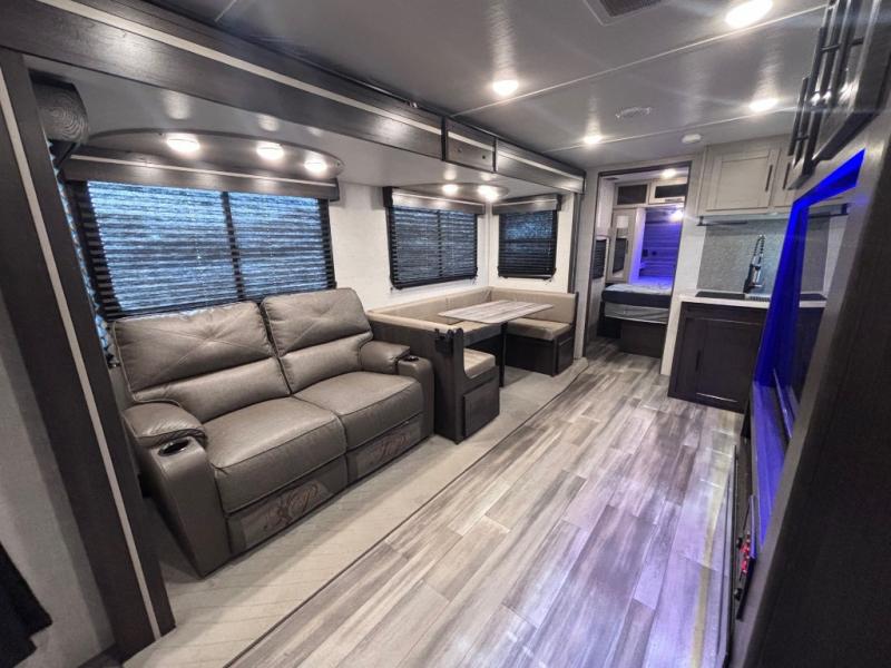 Each one of these CrossRoads RV Cruiser Aire fifth wheels and travel trailers have high end features incorporated into them! Some of these features include a Secure Stance entry step, pass-through storage with magnetic slam latch doors to keep your gear stored safely, and electric awnings with LED lights to highlight the good times at night. Their construction consists of a one piece seamless super flex roof, a five sided aluminum construction, and an aerodynamic painted front cap for an easier tow. Stay connected where ever you go with the HD digital TV antenna with Winegard Wifi prep. The luxurious interiors are filled with at home comforts like Chef Collection appliances, full trunk storage under the king bed, and fireplaces depending on the model. Come find the perfect one for you and your family today!