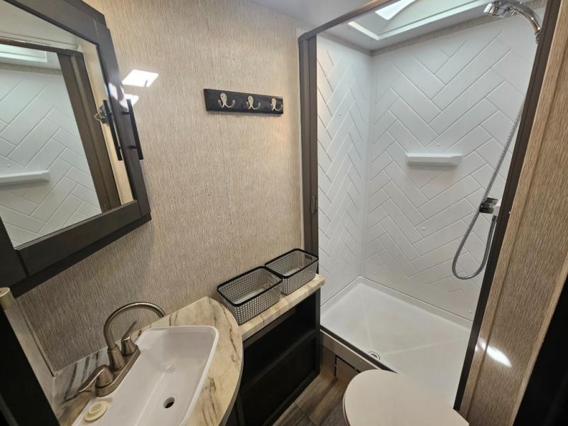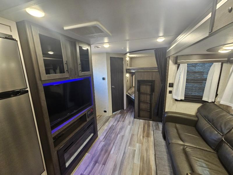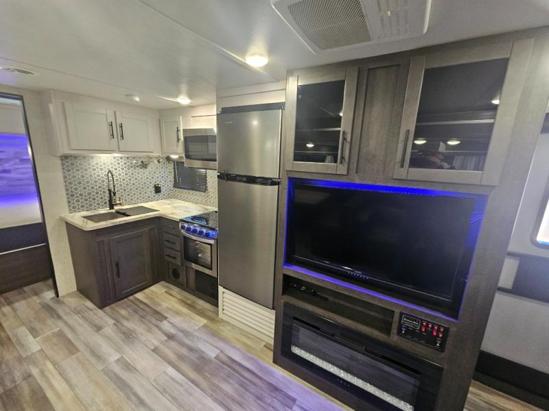 Each one of these CrossRoads RV Cruiser Aire fifth wheels and travel trailers have high end features incorporated into them! Some of these features include a Secure Stance entry step, pass-through storage with magnetic slam latch doors to keep your gear stored safely, and electric awnings with LED lights to highlight the good times at night. Their construction consists of a one piece seamless super flex roof, a five sided aluminum construction, and an aerodynamic painted front cap for an easier tow. Stay connected where ever you go with the HD digital TV antenna with Winegard Wifi prep. The luxurious interiors are filled with at home comforts like Chef Collection appliances, full trunk storage under the king bed, and fireplaces depending on the model. Come find the perfect one for you and your family today!