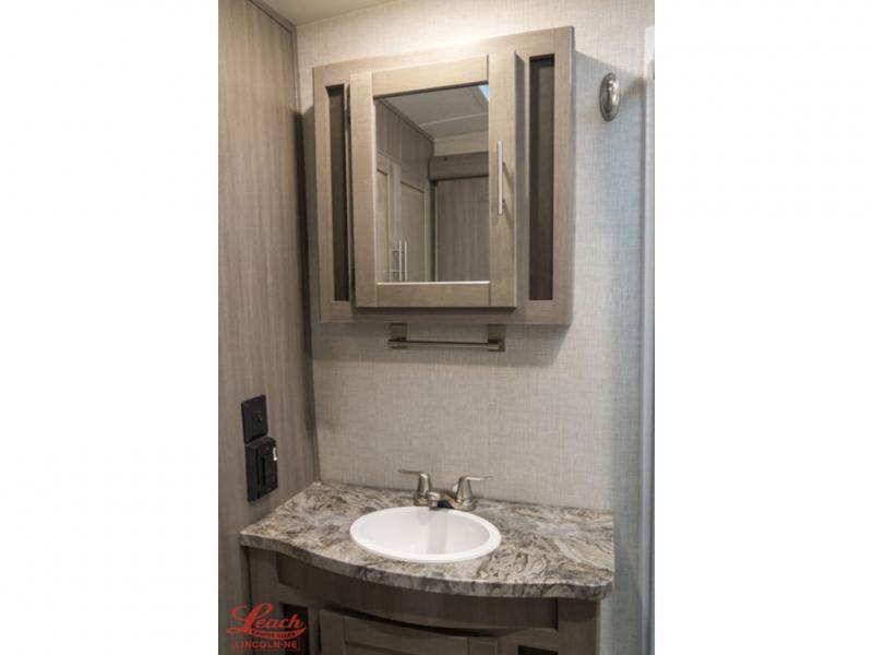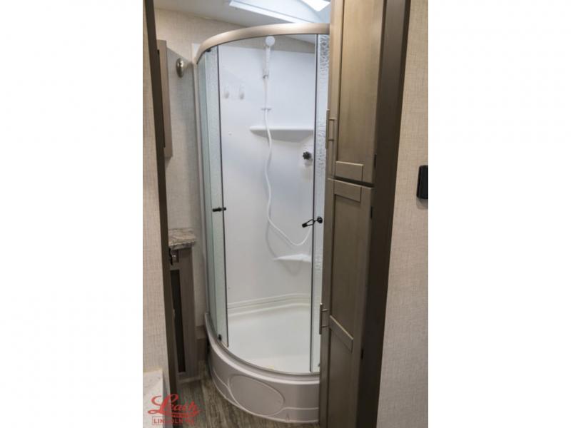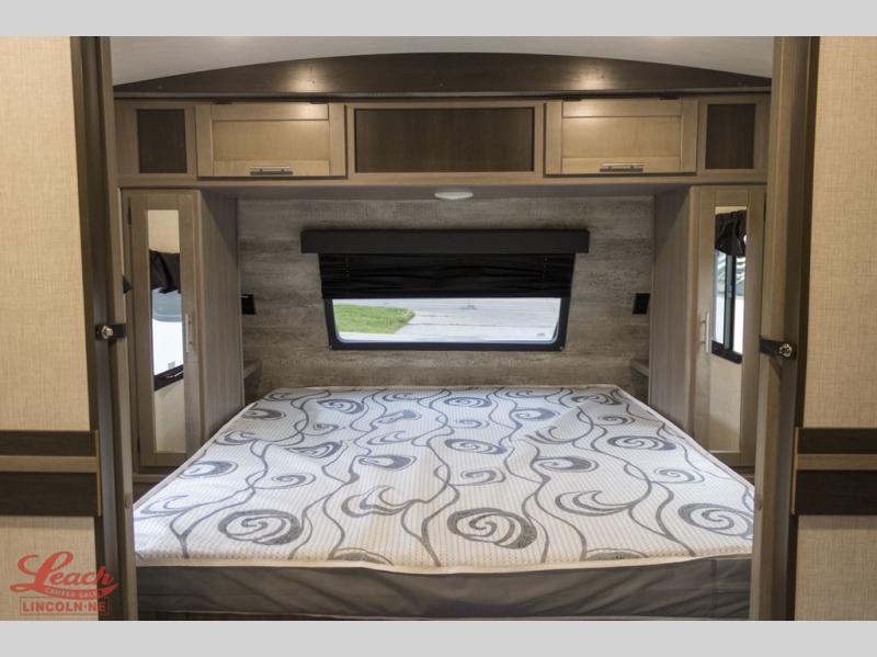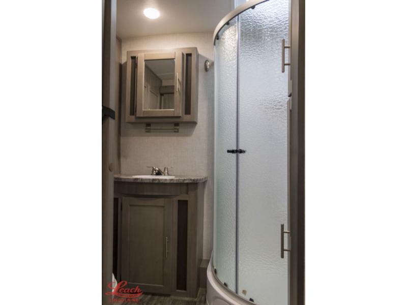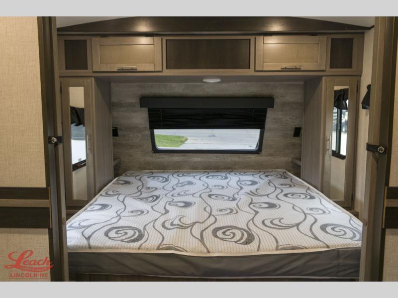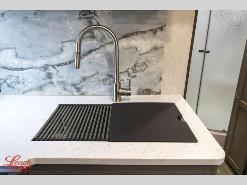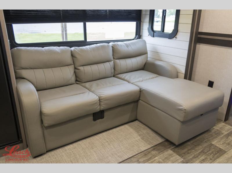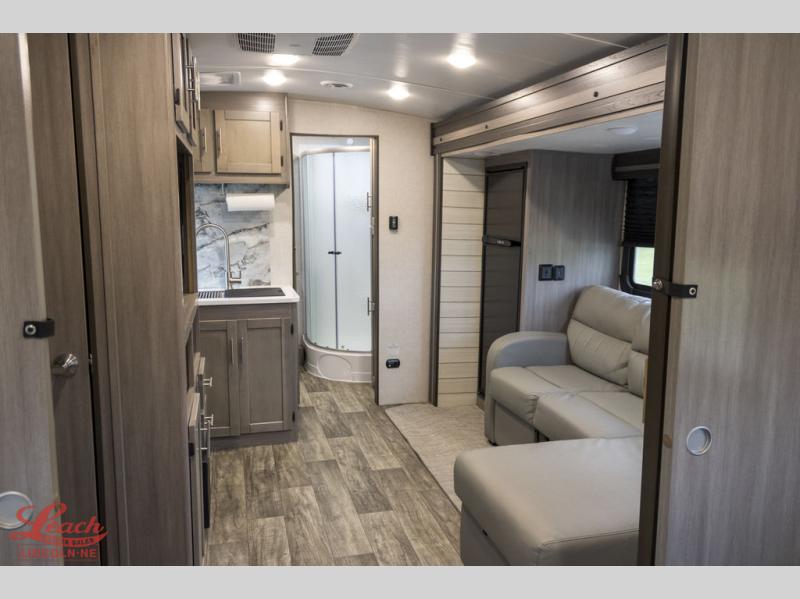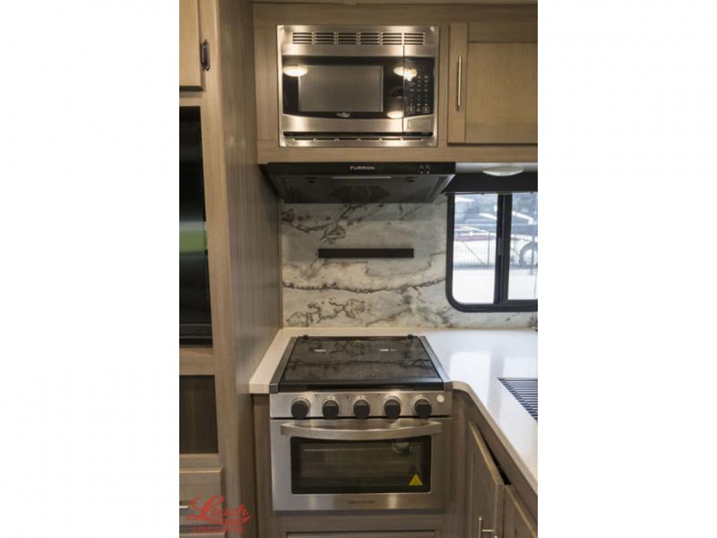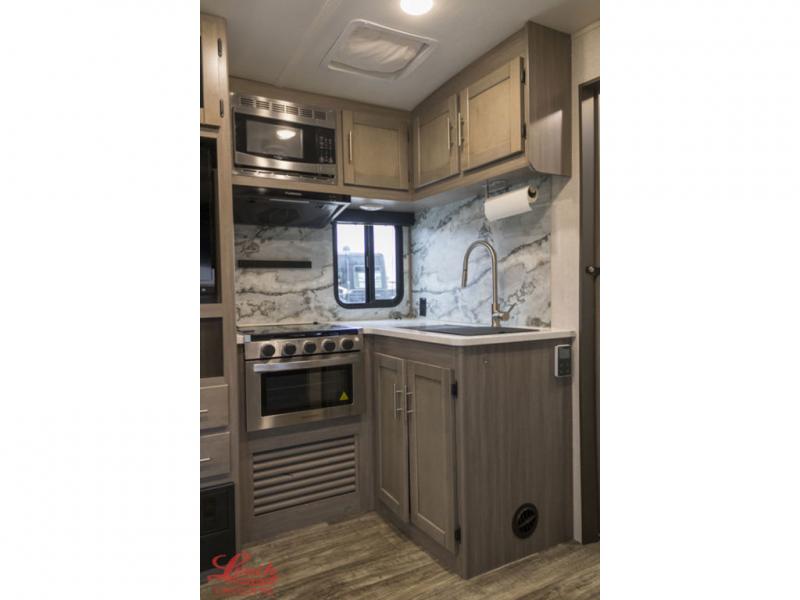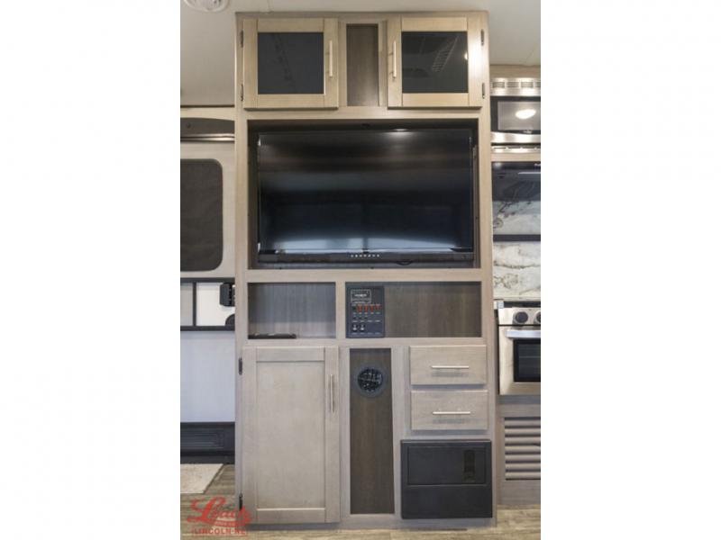 It's time to upgrade your RV to this spacious travel trailer! The slide out in the main living area will provide the dog space to stretch out, and within the slide out you'll find the tri-fold sofa/chaise lounge for your comfort. The full rear bath is both spacious and convenient with its shower skylight, medicine cabinet, and linen closet for clean towels. Head to the kitchen to prepare lunch on the glass top range or take your preparations outside to cook on the exterior camp kitchen. This model also features a front private bedroom with a king bed, dual wardrobes, plus a shoe storage and pet station for your loyal buddy, plus there is an available optional 8 cu. ft. refrigerator, and more!