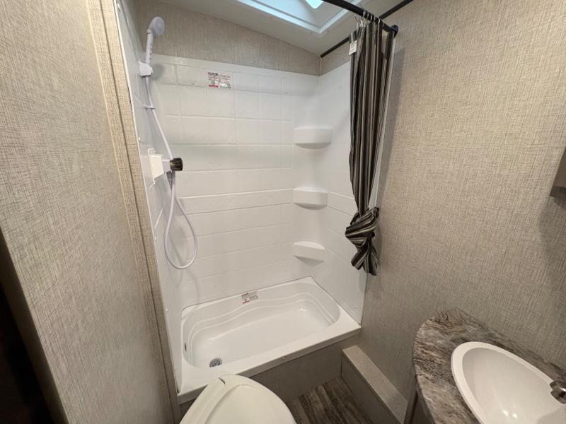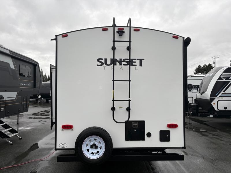 With any Sunset Trail travel trailer by CrossRoads RV, the interior offers a stainless steel farmhouse single bowl sink with a cover, solid surface countertops in the kitchen, a 12 volt refrigerator, USB ports in the bedroom and main area, and a Connexx entertainment TV with soundbar for inside enjoyment. Also included is the Extreme Weather package with maximum insulation with reflective foil, a 30,000 BTU furnace, and a 2" heat duct in the enclosed underbelly for four seasons of traveling. And the Blade Air system offers 20% more airflow and re-engineered components on the A/C. The HyperDeck flooring is water resistant, fiberglass reinforced and has polypropylene layers. Make your lightweight and comfortable RV decision today!