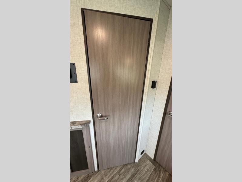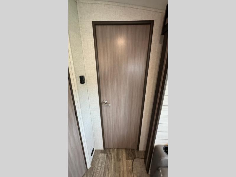 You will love this trailer for many reasons beginning with having dual entry for easy access to the spacious rear bedroom or the main living and kitchen area. The cook will love the front kitchen with lots of counter space, a window to enjoy the view and all the kitchen amenities to make warm meals for the two of you plus anyone that visits. The slide out sofa and booth dinette offer sleeping space for the grandkids on top of relaxation inside when you aren't outside under the electric awning with LED strip. You will have a full bathroom to get cleaned up after a fun day outside, and a rear master bedroom with a king bed slide out, storage and a rear window for more great views!
