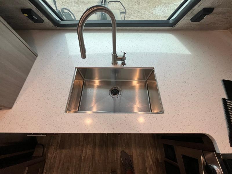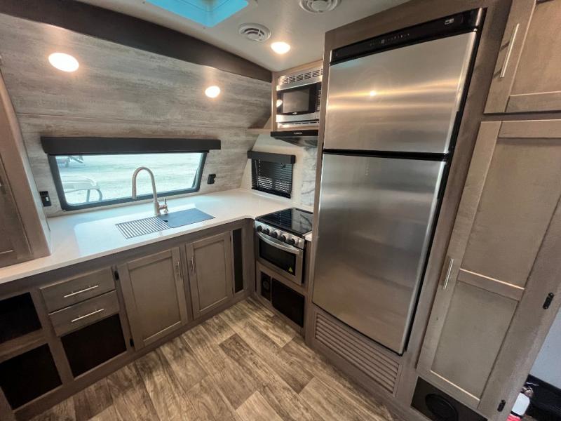 With any Sunset Trail travel trailer by CrossRoads RV, the interior offers a stainless steel farmhouse single bowl sink with a cover, solid surface countertops in the kitchen, a 12 volt refrigerator, USB ports in the bedroom and main area, and a Connexx entertainment TV with soundbar for inside enjoyment. Also included is the Extreme Weather package with maximum insulation with reflective foil, a 30,000 BTU furnace, and a 2" heat duct in the enclosed underbelly for four seasons of traveling. And the Blade Air system offers 20% more airflow and re-engineered components on the A/C. The HyperDeck flooring is water resistant, fiberglass reinforced and has polypropylene layers. Make your lightweight and comfortable RV decision today!