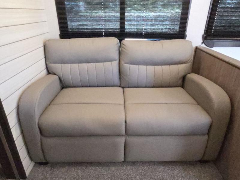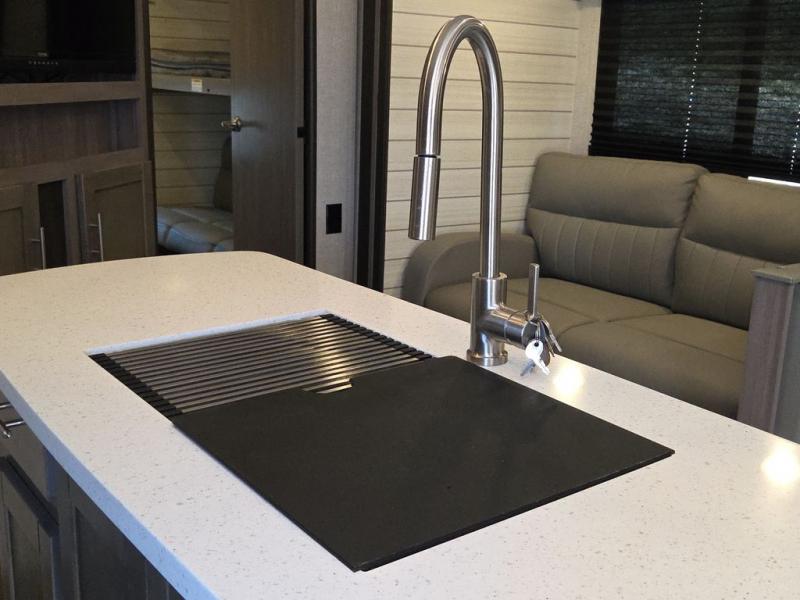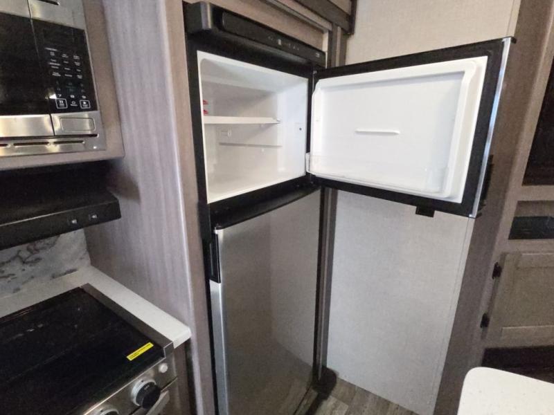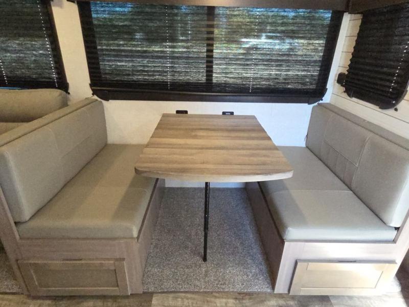 With any Sunset Trail travel trailer by CrossRoads RV, the interior offers a stainless steel farmhouse single bowl sink with a cover, solid surface countertops in the kitchen, a 12 volt refrigerator, USB ports in the bedroom and main area, and a Connexx entertainment TV with soundbar for inside enjoyment. Also included is the Extreme Weather package with maximum insulation with reflective foil, a 30,000 BTU furnace, and a 2" heat duct in the enclosed underbelly for four seasons of traveling. And the Blade Air system offers 20% more airflow and re-engineered components on the A/C. The HyperDeck flooring is water resistant, fiberglass reinforced and has polypropylene layers. Make your lightweight and comfortable RV decision today!