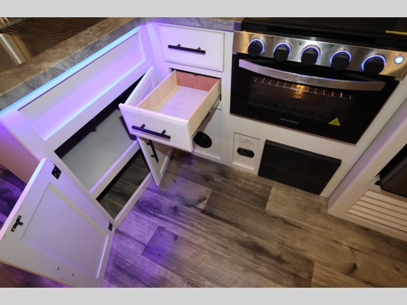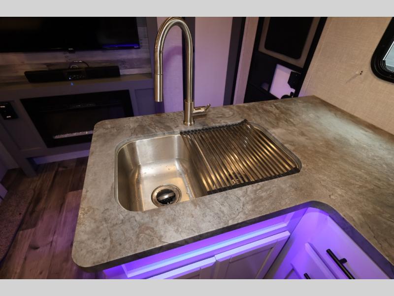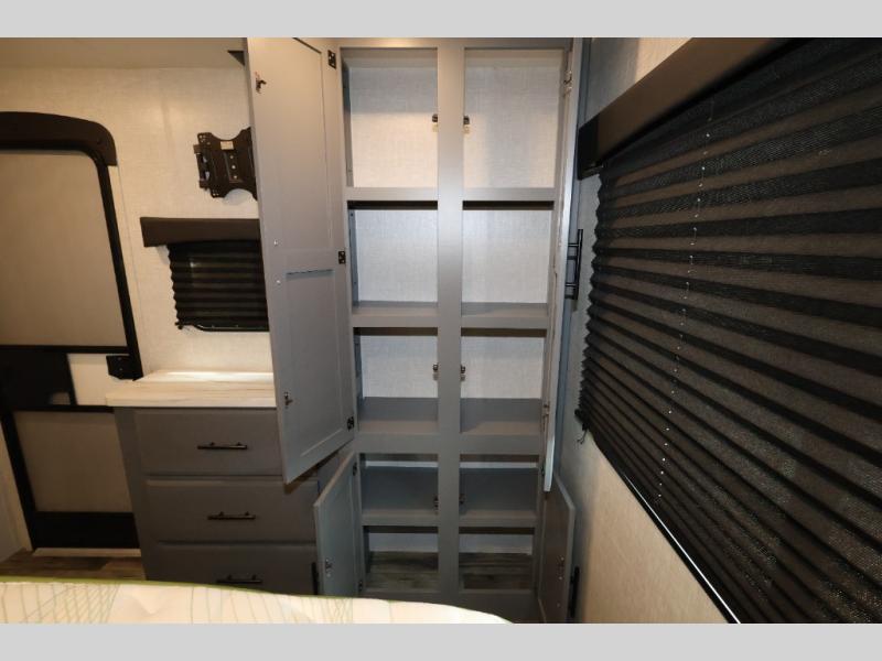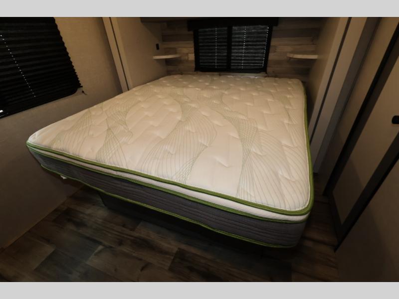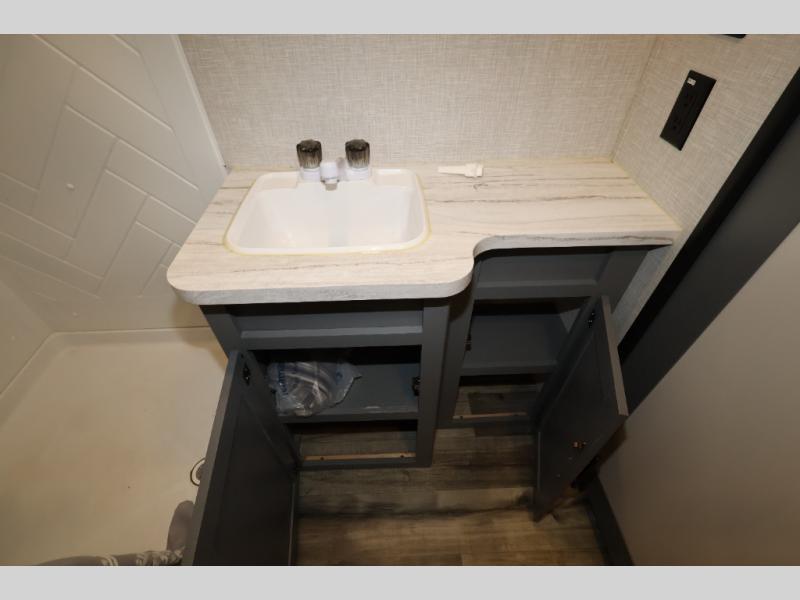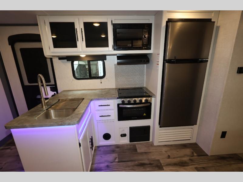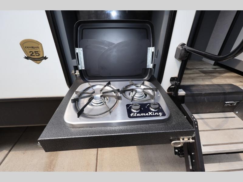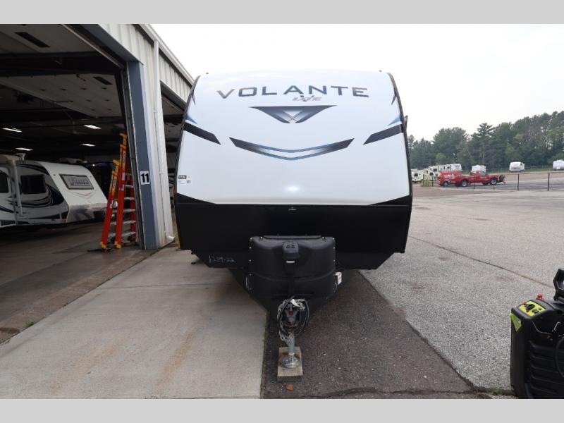 Each Volante fifth wheel or travel trailer by CrossRoads RV includes features and options that will enhance your camping experience. The fiberglass front cap is sure to be eye-catching, and you can plan to camp year around with the fully enclosed and forced air heated underbelly. There is also an outside shower, an electric awning with LED lights, outdoor speakers with LED accents, plus many more exterior conveniences. The interior of each Volante will have you feeling right at home with premium residential furniture, coordinating window treatments in the bedroom, nightstands with outlets in the bedroom, plus USB ports to keep your electronics charged. You will also appreciate a 13,500 BTU A/C, plus solar power prep and WiFi prep if you need to get some work done while you're away from home.
