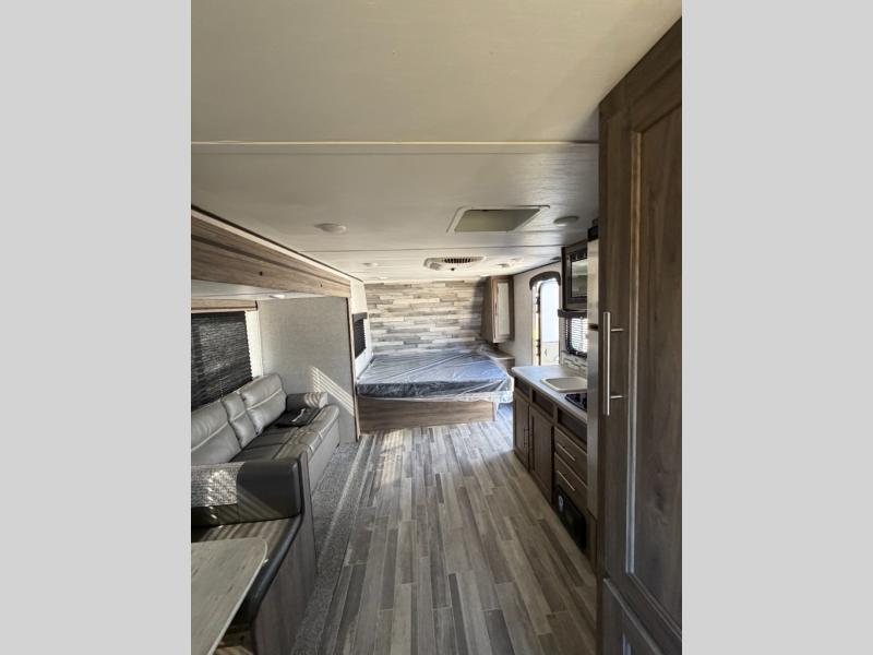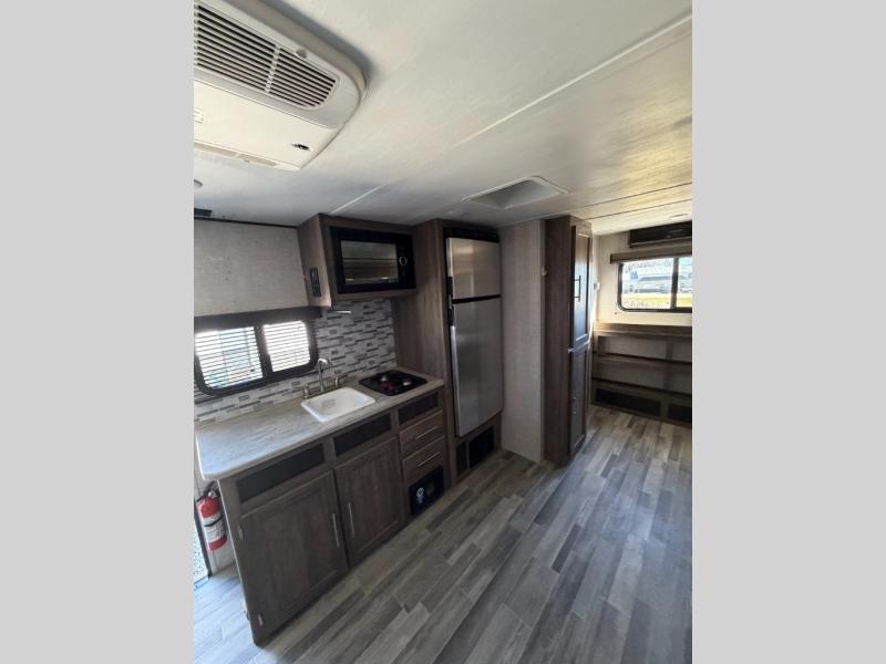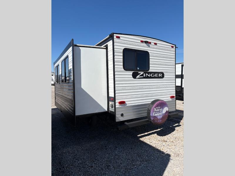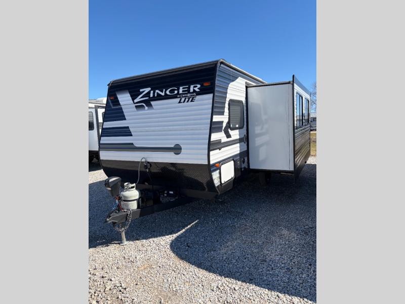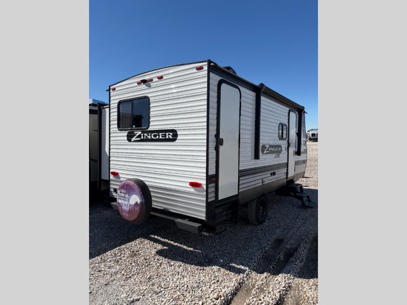 Join the CrossRoads family with a Zinger Lite travel trailer! You'll enjoy an abundance of standard features you would usually find with higher priced travel trailers. Each model features an aerodynamic front end for a more sleek look and better wind resistance when towing. You will appreciate the molded rain gutters with 3" drip spouts, plus Secure Stance entry steps and Keyed-A-Like doors. Having an AM/FM stereo with a Bluetooth soundbar will allow you to listen to your favorite tunes as you camp, and there are outdoor speakers with LED accents if you plan to take the party outdoors. The Zinger Lite also features a 81" interior ceiling height, generous storage space, plus popular options that can be added to further customize your RV. Choose yours today!
