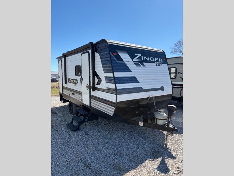 Step inside this Zinger Lite travel trailer and experience fun at its best. You can easily tow this unit with an SUV or minivan which gets you on the road in no time! You will love a good night's rest on the RV queen bed while the kids or your guests crash on the sofa or the U-shaped dinette. Since this model includes a large slide, your guests will have plenty of room to move about. This unit also includes shelves in the living area so that you can bring along books and pictures to make you feel right at home. With a 10-cu. ft. refrigerator and a pantry for your food, you'll have all you need to make a home-cooked meal for your family.