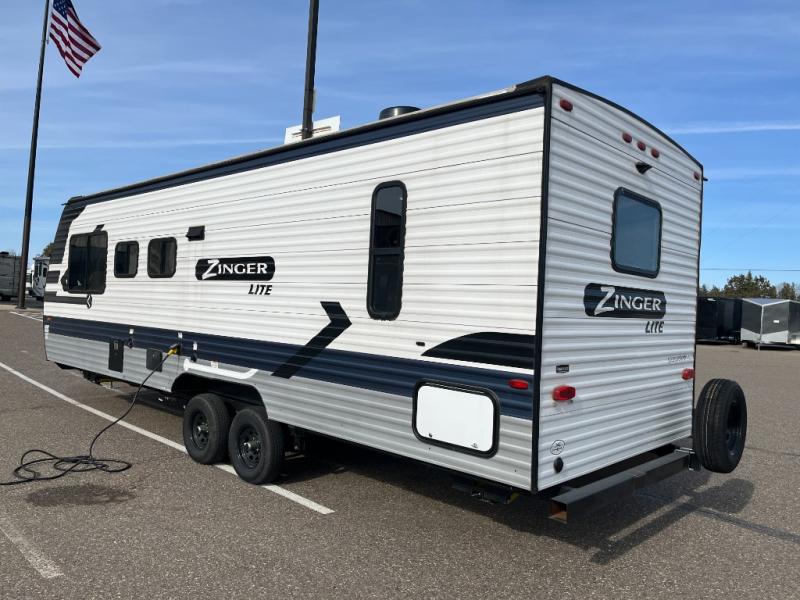 Join the CrossRoads family with a Zinger Lite travel trailer! You'll enjoy an abundance of standard features you would usually find with higher priced travel trailers. Each model features an aerodynamic front end for a more sleek look and better wind resistance when towing. You will appreciate the molded rain gutters with 3" drip spouts, plus Secure Stance entry steps and Keyed-A-Like doors. Having an AM/FM stereo with a Bluetooth soundbar will allow you to listen to your favorite tunes as you camp, and there are outdoor speakers with LED accents if you plan to take the party outdoors. The Zinger Lite also features a 81" interior ceiling height, generous storage space, plus popular options that can be added to further customize your RV. Choose yours today!