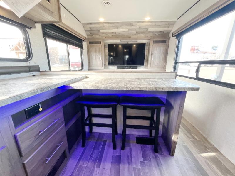 You and your spouse will not want to leave the campsite with this Zinger Lite travel trailer! There is a comfortable 60" jackknife sofa with an end table across from the front entertainment center which features a 50" TV for you to watch your favorite movies on at night. The outstanding kitchen not only has two bar stools at the countertop, but it also has a 10-cu. ft. refrigerator, an oven with an LED glass top, and a stainless steel sink with a stainless steel high-rise faucet to make clean-up a breeze. You can head right into the rear private bedroom from the walk-through bath and take a quick nap on the RV queen bed with shirt closets on either side to keep your hang-up clothes neat and tidy!