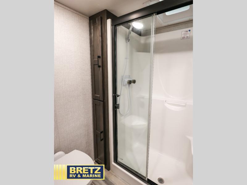 Start cruising through the campgrounds in one of these CrossRoads RV Cruiser fifth wheels! Their heated enclosed underbelly and easy winterization bypass allow you to camp longer into the year. The aerodynamic painted fiberglass cap limits wind resistance, and when you need to clean off the walk-on roof you will appreciate having the ladder that leads to it. You can even secure your bikes to the bike rack and speaking of secure there are secure stance steps to help you safely exit and enter the unit. Two 15,000 BTU air conditioners keep the interiors nice and cool, plus the exterior reflective heat barrier aids in keeping it even cooler. There is entertainment throughout when mother nature rains on your parade between the CD/DVD player with HDMI, the LED TV, the USB ports to charge your tablets, and the Wi-Fi prep. Come find your favorite model today!