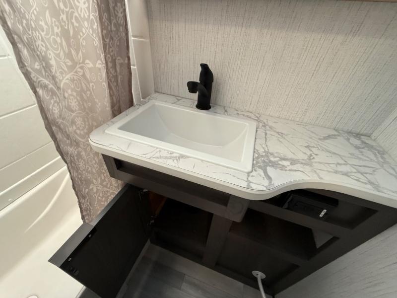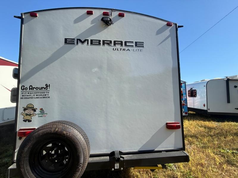 Each Embrace travel trailer by Cruiser is constructed with laminated rear wall and slide out ends, a 6' 11" aluminum roof, and 5/8" tongue and groove plywood flooring for durability. The industry leading E-Z lube axles will provide smooth towing from home to campground, and the heated and enclosed underbelly will allow you to camp well into the colder months. Inside, you'll love with the solid surface countertops, the charging station with 12V and USB ports, plus concealed cabinet door hinges for a more at-home feel. The Embrace also features the patent pending full belly storage system so you can bring along extra coolers, hiking gear, and tackle boxes with ease!