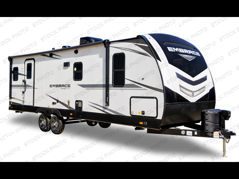 Each Embrace travel trailer by Cruiser is constructed with laminated rear wall and slide out ends, a 6' 11" aluminum roof, and 5/8" tongue and groove plywood flooring for durability. The industry leading E-Z lube axles will provide smooth towing from home to campground, and the heated and enclosed underbelly will allow you to camp well into the colder months. Inside, you'll love with the solid surface countertops, the charging station with 12V and USB ports, plus concealed cabinet door hinges for a more at-home feel. The Embrace also features the patent pending full belly storage system so you can bring along extra coolers, hiking gear, and tackle boxes with ease!