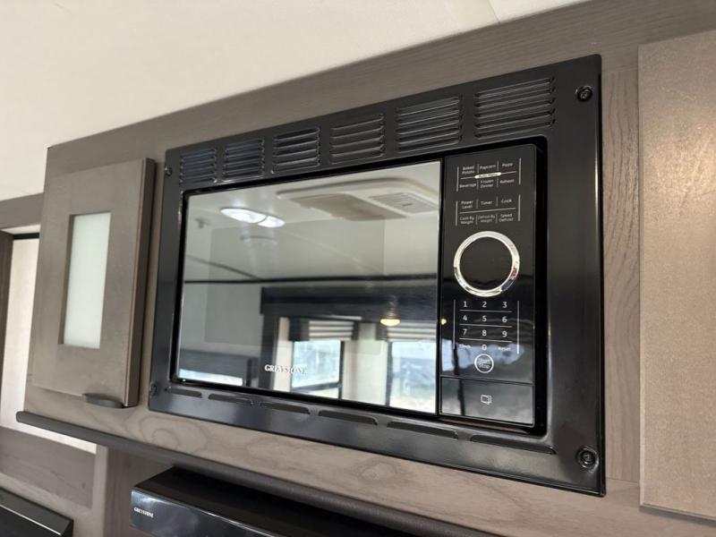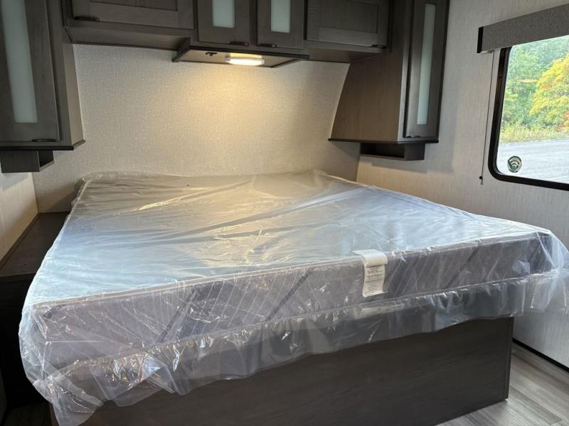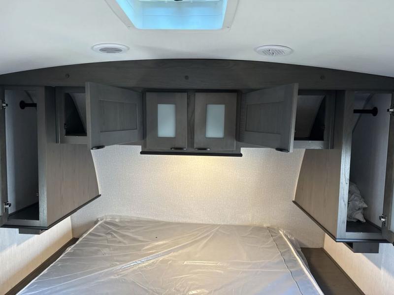 With any MPG travel trailer or toy hauler by Cruiser you will find a 6' 11" barrel roof, Azdel composite laminated walls, and a high gloss fiberglass front cap with LED lighting for a sleek look. There are seamless kitchen countertops and plywood flooring that will be easy to clean, plus residential hardwood cabinets with hidden hinges for a more at-home feel. The slam latch baggage doors with magnetic latches will make loading up easier than ever, plus the full belly storage system includes LED lights you are sure to appreciate. Each model also includes multiple charging stations with 12v and USB ports, a four speaker soundbar system to listen to your playlists, and a dual ducted A/C to keep you cool during those hot summer months!