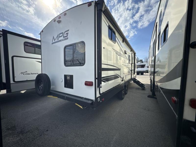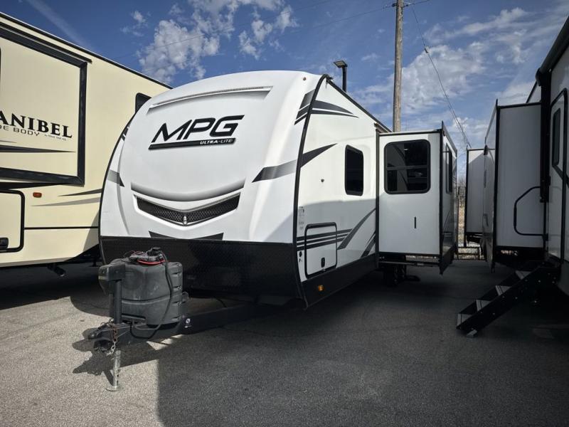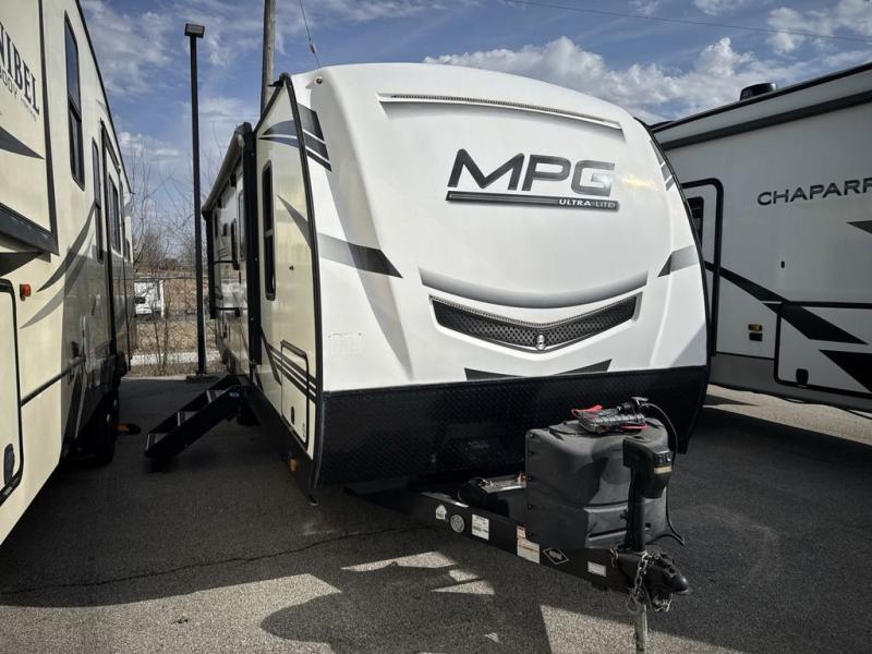 With any MPG travel trailer or toy hauler by Cruiser you will find a 6' 11" barrel roof, Azdel composite laminated walls, and a high gloss fiberglass front cap with LED lighting for a sleek look. There are seamless kitchen countertops and plywood flooring that will be easy to clean, plus residential hardwood cabinets with hidden hinges for a more at-home feel. The slam latch baggage doors with magnetic latches will make loading up easier than ever, plus the full belly storage system includes LED lights you are sure to appreciate. Each model also includes multiple charging stations with 12v and USB ports, a four speaker soundbar system to listen to your playlists, and a dual ducted A/C to keep you cool during those hot summer months!