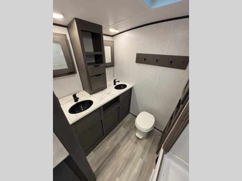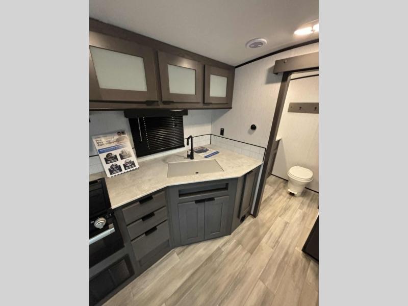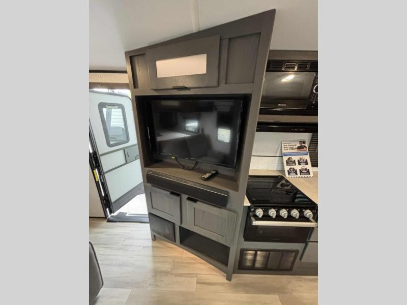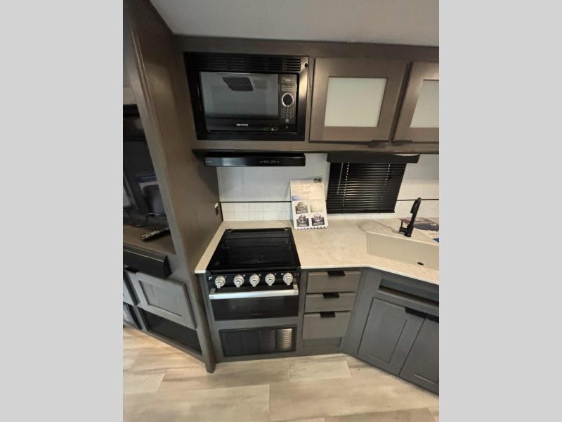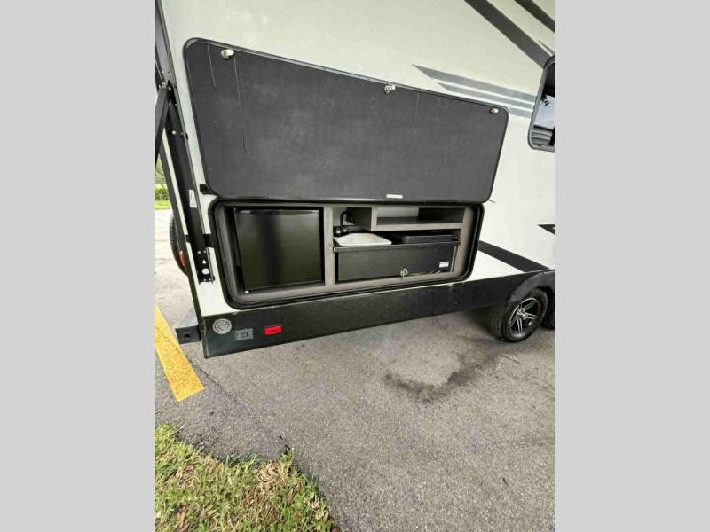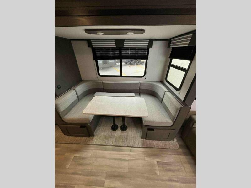 Escape the hustle and bustle of the city life and retreat to the great outdoors in this spacious travel trailer. You will have plenty of space to relax in the main living area thanks to the slide out, and here you'll find a U-shaped dinette. There is also a sofa and an entertainment center that will be great if you add the optional LED TV. There is an outside kitchen to cook breakfast outdoors, plus a full kitchen indoors if the weather isn't cooperating. You are sure to love the full rear bath that includes dual bath sinks, a spacious shower, plus a linen closet to store clean towels!