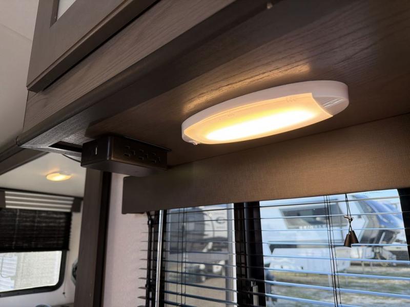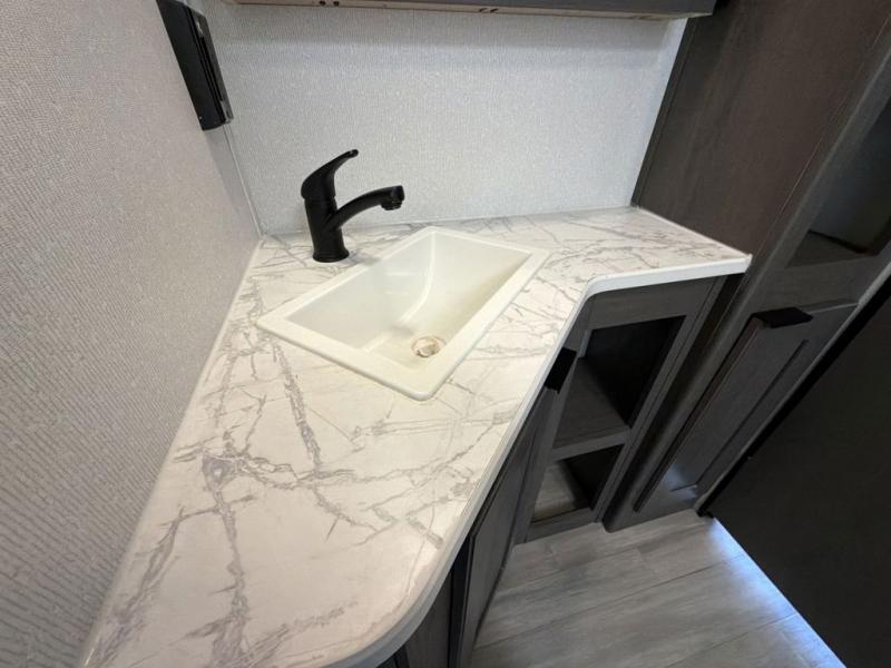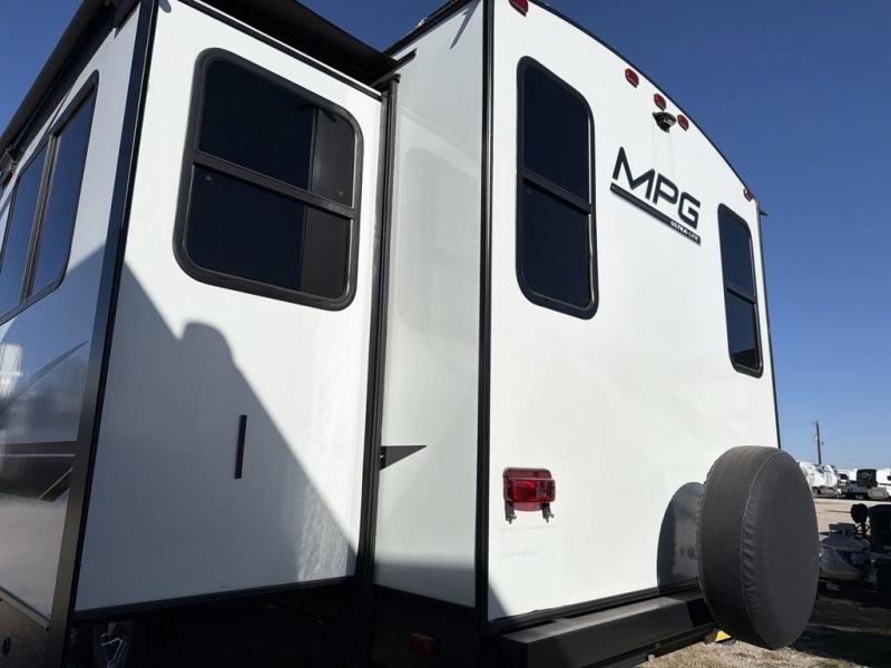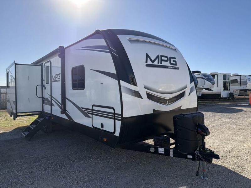 With any MPG travel trailer or toy hauler by Cruiser you will find a 6' 11" barrel roof, Azdel composite laminated walls, and a high gloss fiberglass front cap with LED lighting for a sleek look. There are seamless kitchen countertops and plywood flooring that will be easy to clean, plus residential hardwood cabinets with hidden hinges for a more at-home feel. The slam latch baggage doors with magnetic latches will make loading up easier than ever, plus the full belly storage system includes LED lights you are sure to appreciate. Each model also includes multiple charging stations with 12v and USB ports, a four speaker soundbar system to listen to your playlists, and a dual ducted A/C to keep you cool during those hot summer months!