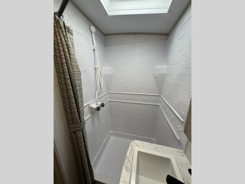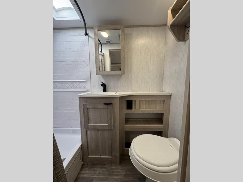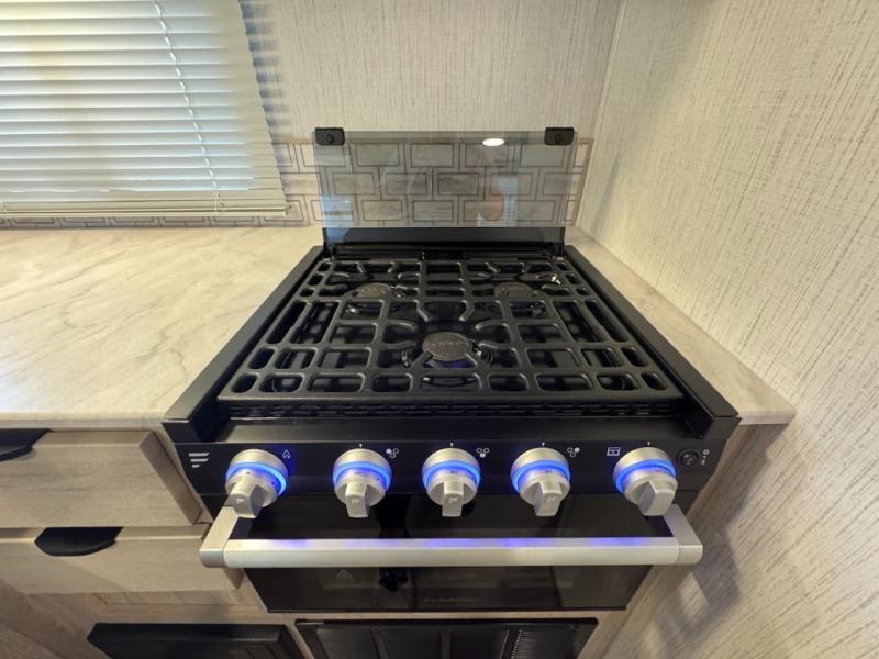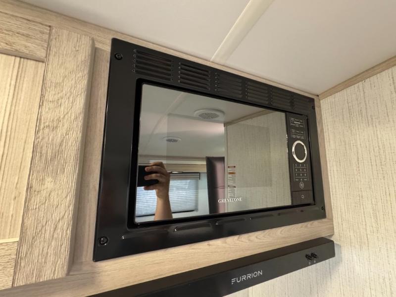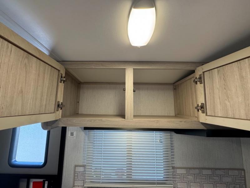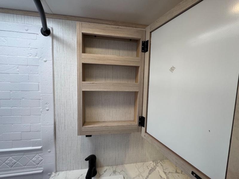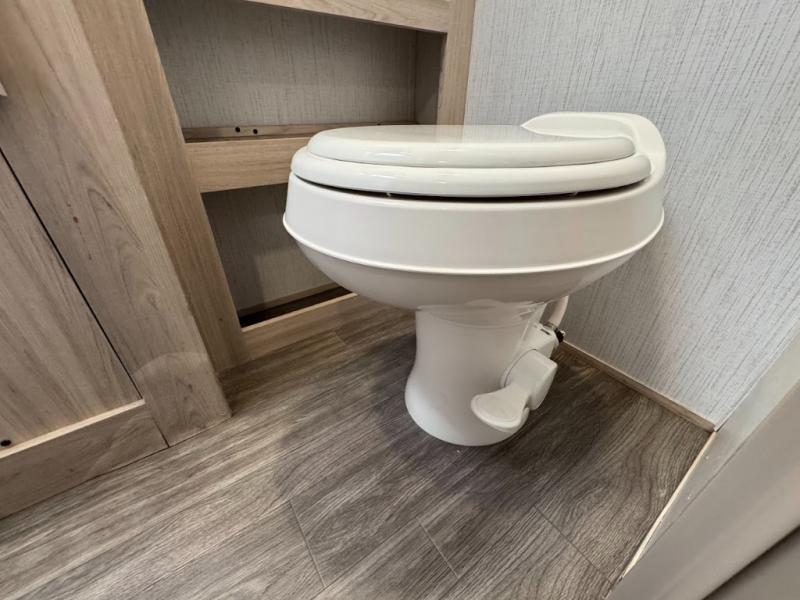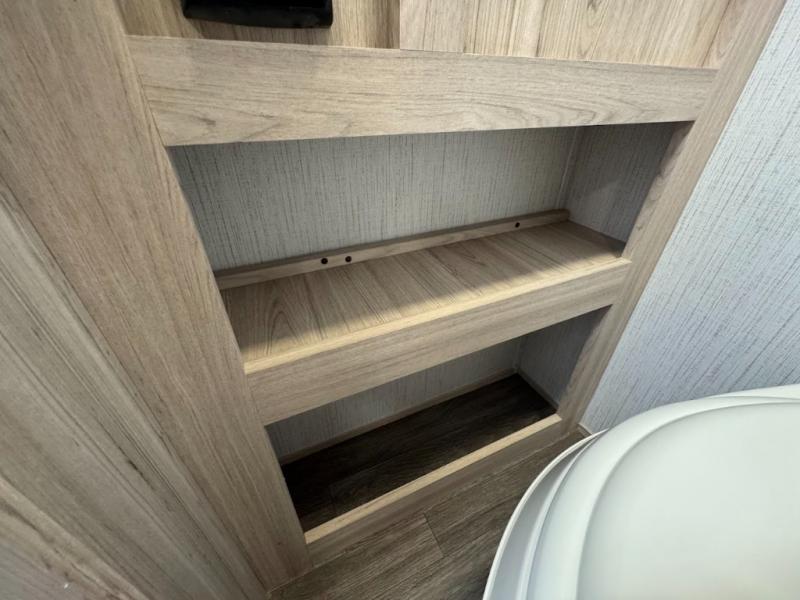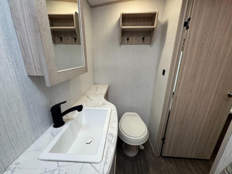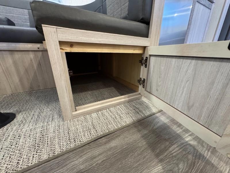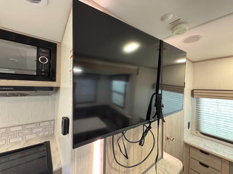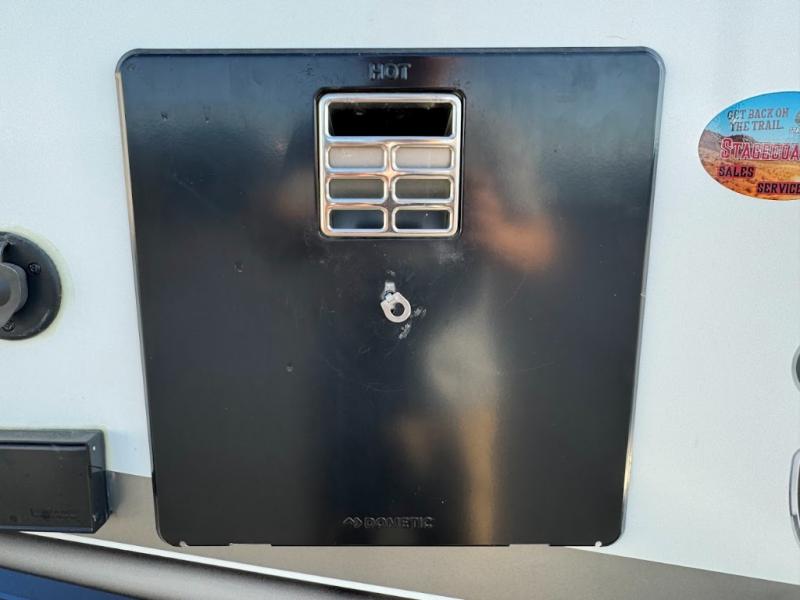If you need to get a little work done while you are away then this travel trailer is perfect for you with the rear desk! The single slide provides more walking around space and houses the U-shaped dinette, 10.7 cu. ft. refrigerator, and pantry that is big enough to hold all of your favorite snacks. The front patent pending king bed sliding system has a pet palace underneath with a cruise-thru storage design and there are wardrobes on either side to keep your clothes looking their best, plus a privacy curtain to draw while you change or sleep. The exterior full belly storage system is big enough for all of your outdoor gear and the 15' electric awning has LED lights to highlight the good times at night!