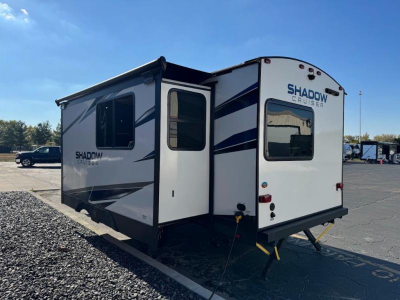 Each one of these Cruiser Shadow Cruiser travel trailers come with convenient features for you to make memories that will last a lifetime! The five sided aluminum framing holds together the Azdel composite laminated sidewalls which will keep your unit from rotting away, plus the surround seal slide system has a rain gutter to aid in keeping water out. Their strong foundation is built with a powder coated structural I-beam frames and three times the amount of required full-height cross members to provide a more solid floor foundation with more attachment points. Travel any time of year with the Extended Season package that includes radiant foil and ducted heating. There is also dual ducted 13,500 BTU A/C to keep you cool and a high BTU ducted furnace to keep you warm. The patent pending full belly pass-through storage area is LED lit so you can see all of your gear and slam latch baggage doors with magnetic latches to keep it in place while you access your items. Come find the perfect model for you today!