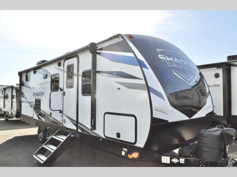 Each one of these Cruiser Shadow Cruiser travel trailers come with convenient features for you to make memories that will last a lifetime! The five sided aluminum framing holds together the Azdel composite laminated sidewalls which will keep your unit from rotting away, plus the surround seal slide system has a rain gutter to aid in keeping water out. Their strong foundation is built with a powder coated structural I-beam frames and three times the amount of required full-height cross members to provide a more solid floor foundation with more attachment points. Travel any time of year with the Extended Season package that includes radiant foil and ducted heating. There is also dual ducted 13,500 BTU A/C to keep you cool and a high BTU ducted furnace to keep you warm. The patent pending full belly pass-through storage area is LED lit so you can see all of your gear and slam latch baggage doors with magnetic latches to keep it in place while you access your items. Come find the perfect model for you today!