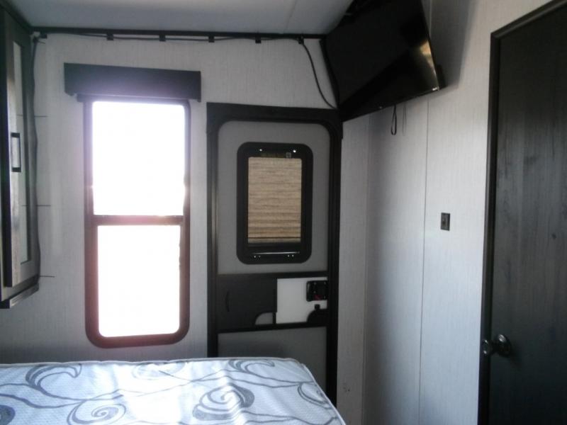 Each Stryker toy hauler travel trailer by Cruiser starts with a powder coated structural steel I-beam frame, Azdel composite laminated sidewalls, and a 102" wide body, perfect for your side-by-side, dirt bikes, or kayaks! The EZ flex rubberized suspension provides smooth towing on tougher roads, and the painted molded fiberglass front cap not only looks sleek, but provides better protection. Inside, you'll find barreled ceilings up to 98" in height, hardwood cabinet doors, solid surface kitchen cabinets, and numerous USB ports and 110V outlets. The removable carpet in the garage will create an open concept you are sure to love, and the industry-first pet palace under the bed will allow you to bring your loyal furry friends along. There's so much more to love about the Stryker toy haulers, like the premium sound system, the large windows, tons of storage space, and the list goes on!