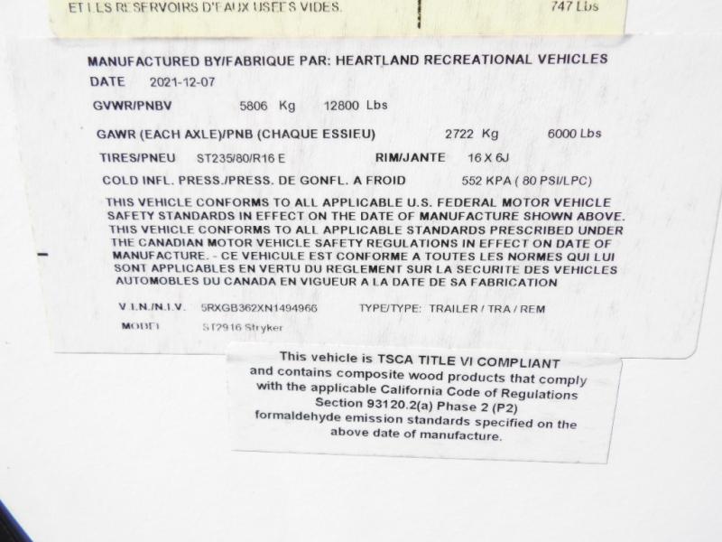 Used 2022 Cruiser Stryker 2916 Toy Hauler Travel Trailer