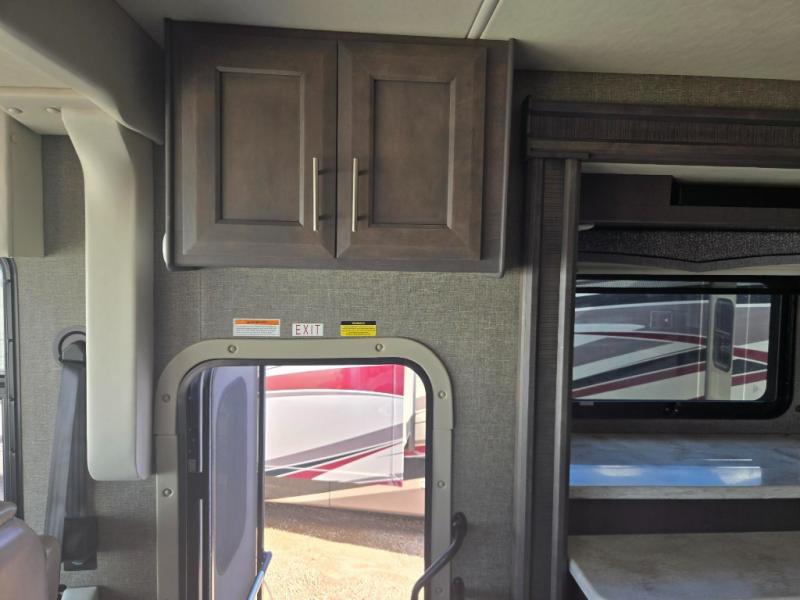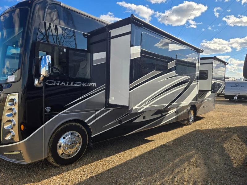 Hop on board the Challenger Class A gas motorhome by Thor Motor Coach for an adventure of a lifetime. The modern dash features a 10.1" touchscreen dash radio with Bluetooth, Axerra Navigation and Sirius/XM prep, plus there are reclining/swivel leatherette captain's chairs for your comfort. Setting up your coach will be a breeze with the automatic leveling jacks with touchpad controls, and each model includes an Onan RV QG 5500 gas generator, dual roof A/C's, and many more amenities for hassle-free camping. The interior of the Challenger will have you feeling at home in a heartbeat. Residential vinyl flooring, solid surface countertops, and satin-finish cabinetry are just a few comforts you will enjoy. Each model also includes a Winegard ConnecT WiFi extender +4G to keep you connected to the outside world as you travel, and an entertainment package that will never leave you bored!