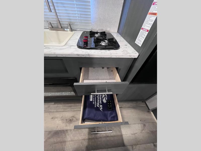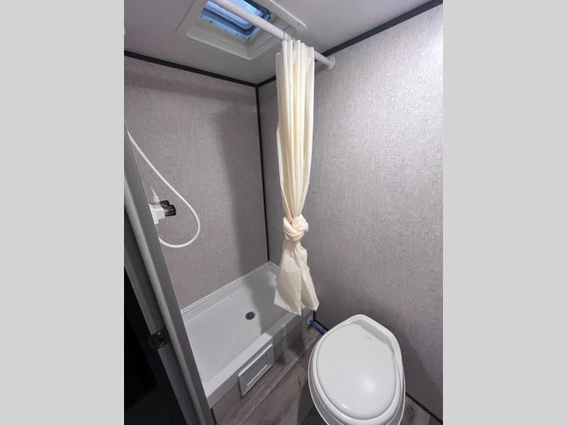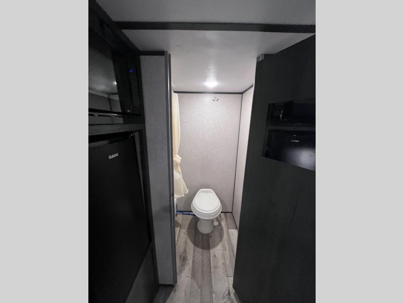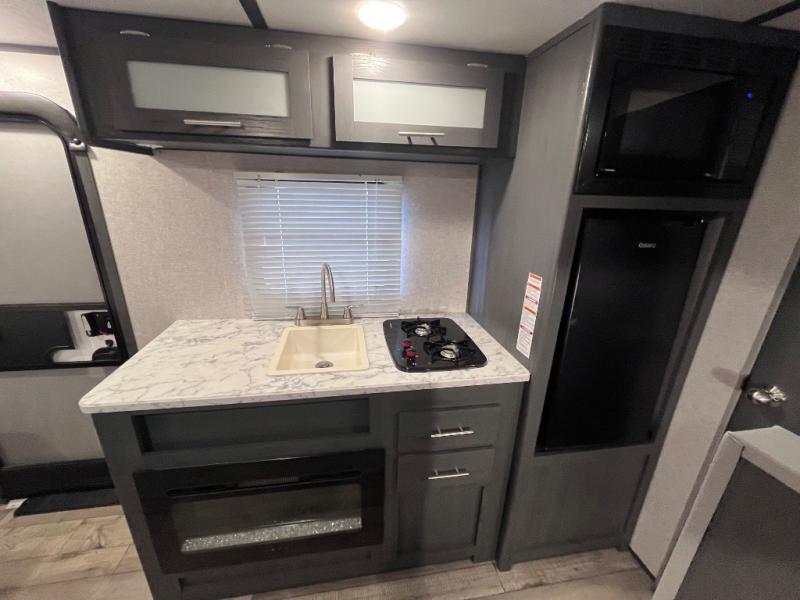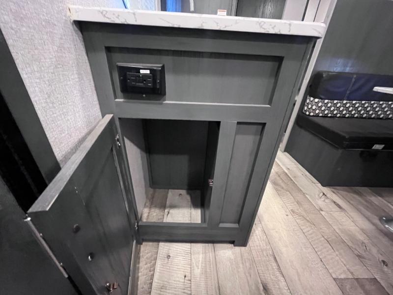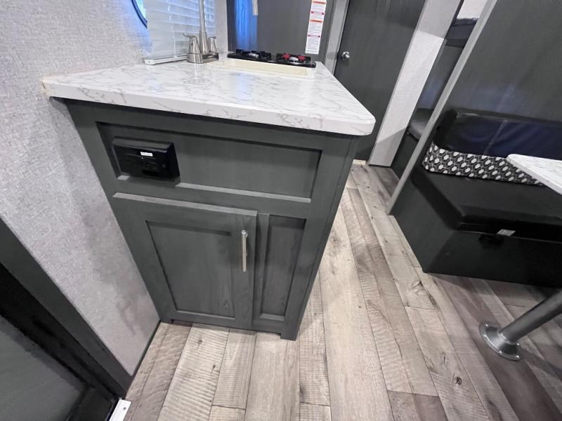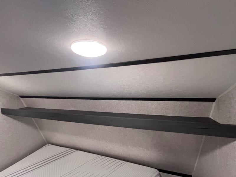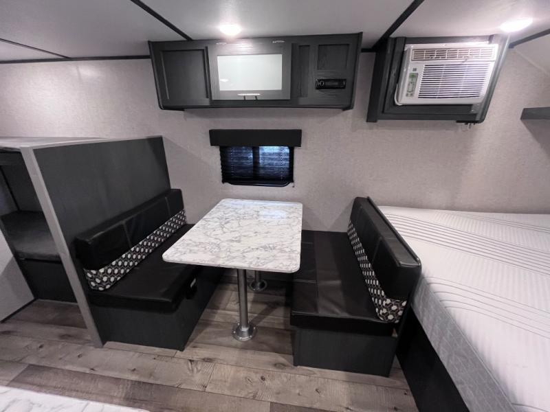 Step inside this travel trailer and see just how fun your next camping trip can be! The kids will love the set of rear corner bunk beds and you will love the front queen-size bed, plus the booth dinette can transform into an extra sleeping space when not in use. You can rinse the sand off in the rear corner bathroom, grab a cold drink from the 3.3 cu. ft. refrigerator, and then head outside and relax underneath the 10' power awning with LED lights!