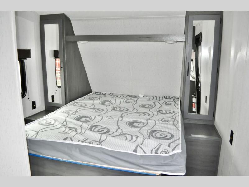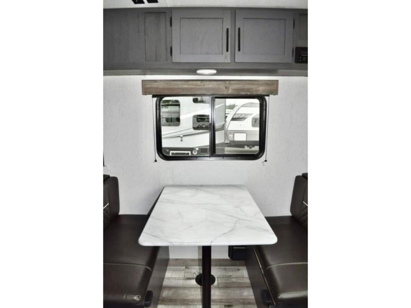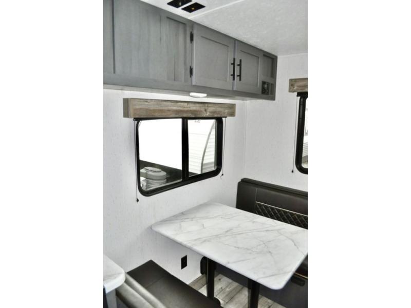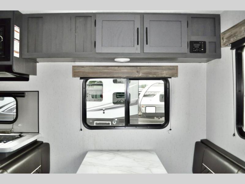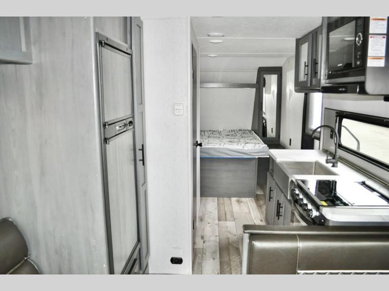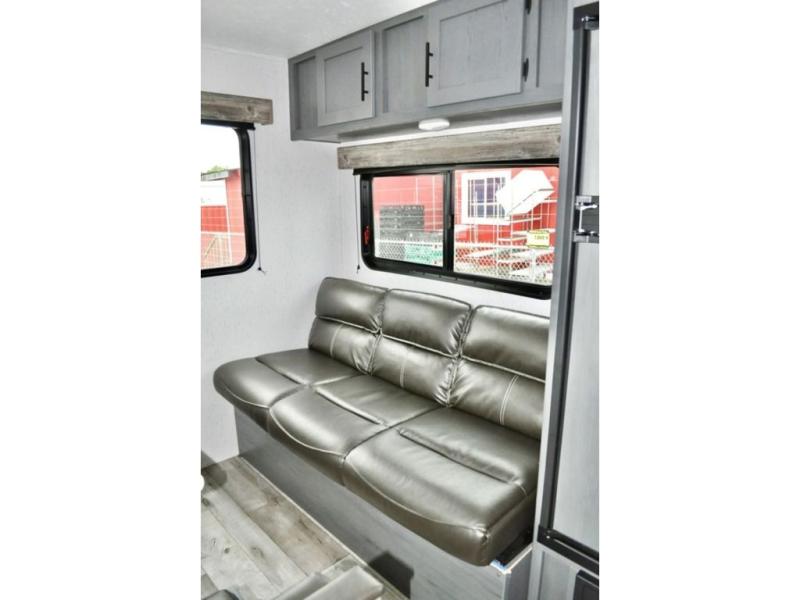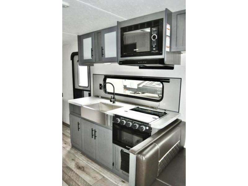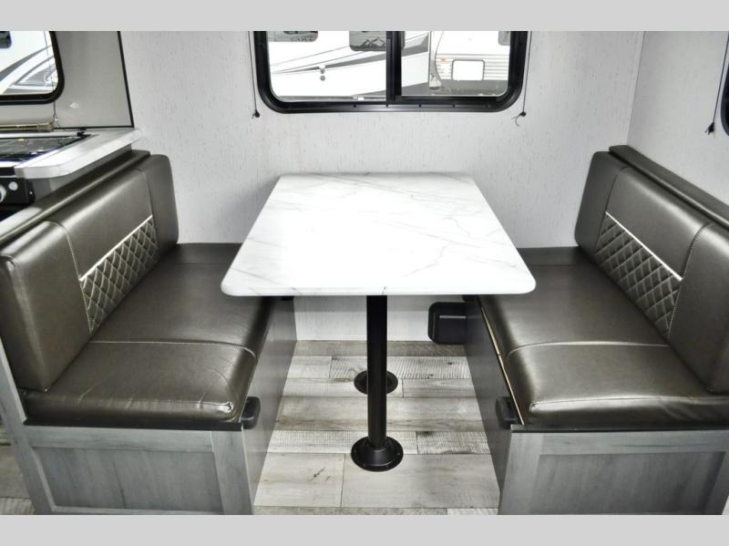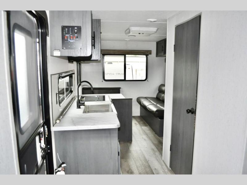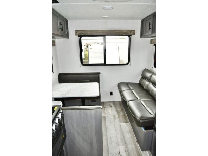 Pack up your camping gear and load it into this Aspen Trail travel trailer to enjoy a fun weekend getaway! You will enjoy a good night's rest each night on the front queen-size bed with wardrobes on either side to keep your clothes neat and tidy. After an adventurous day at the beach, you can come back and clean up in the full bathroom with a skylight above the shower for added natural lighting. Once you're clean and fresh, you can grab your favorite snack from the kitchen pantry or pop a bag of popcorn into the stainless steel microwave and then relax on either the booth dinette or sofa, both of which can transform into extra sleeping spaces!