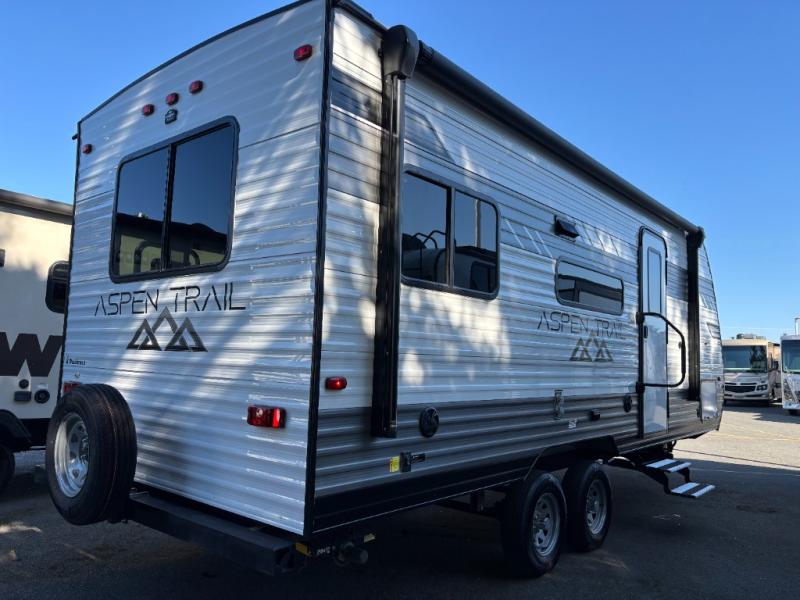 You will find more standard features and more value in each one of these Dutchmen RV Aspen Trail travel trailers! The aerodynamic front profile not only makes them easier to tow, but also more fuel efficient. Experience all of the power with power stabilizers, a power awning, and a power tongue jack for easy setting up and breaking down. The fully enclosed underbelly provides an extra layer of protection for your unit's vitals so you can camp further into the year. With aluminum steps, you will have a solid platform of stability as you enter and exit, plus they are easy to expand or store away. The backup camera prep offers peace of mind as you navigate your unit and the upgraded Beauflor lino throughout will be easy to clean so you don't have to worry about mud getting tracked inside. Come find the one that best suits your needs today!