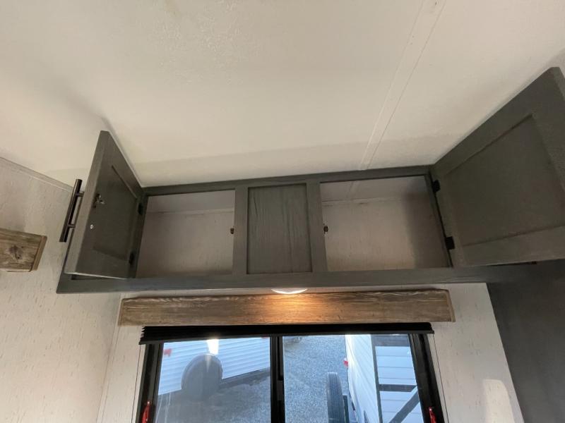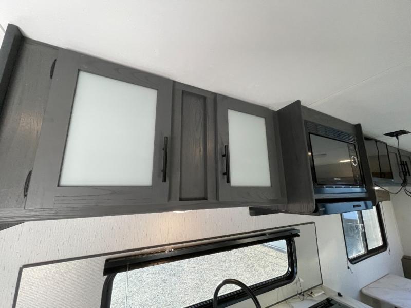Pack up your camping gear and load it into this Aspen Trail travel trailer to enjoy a fun weekend getaway! You will enjoy a good night's rest each night on the front queen-size bed with wardrobes on either side to keep your clothes neat and tidy. After an adventurous day at the beach, you can come back and clean up in the full bathroom with a skylight above the shower for added natural lighting. Once you're clean and fresh, you can grab your favorite snack from the kitchen pantry or pop a bag of popcorn into the stainless steel microwave and then relax on either the booth dinette or sofa, both of which can transform into extra sleeping spaces!