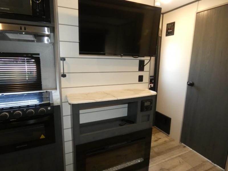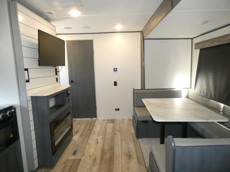 Head out on a weekend getaway with your spouse in this Aspen Trail travel trailer! You will enjoy a good night's rest each night on the queen-size bed in the front private bedroom. The U-shaped dinette is not only a great place to eat your meals at, but also to play games at while you enjoy the fireplace across from it. The full rear bathroom has everything you will need to start the day feeling fresh, including an exhaust fan to eliminate the steam from your nice, hot shower. No need to worry about where you will store all of your outdoor camping gear either because the pass-through storage area has you covered!