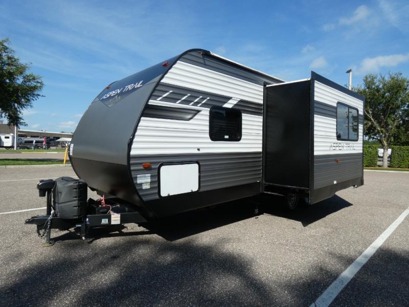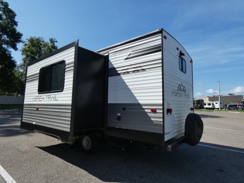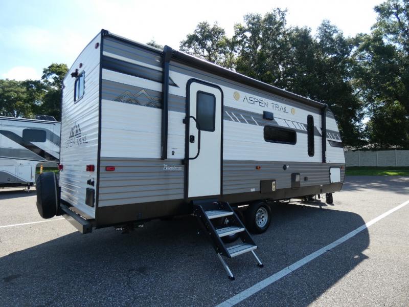 You will find more standard features and more value in each one of these Dutchmen RV Aspen Trail travel trailers! The aerodynamic front profile not only makes them easier to tow, but also more fuel efficient. Experience all of the power with power stabilizers, a power awning, and a power tongue jack for easy setting up and breaking down. The fully enclosed underbelly provides an extra layer of protection for your unit's vitals so you can camp further into the year. With aluminum steps, you will have a solid platform of stability as you enter and exit, plus they are easy to expand or store away. The backup camera prep offers peace of mind as you navigate your unit and the upgraded Beauflor lino throughout will be easy to clean so you don't have to worry about mud getting tracked inside. Come find the one that best suits your needs today!