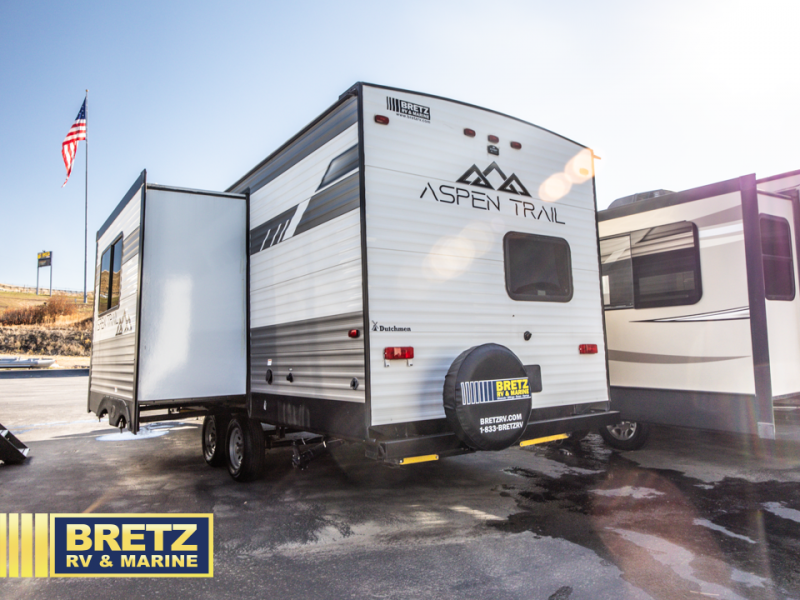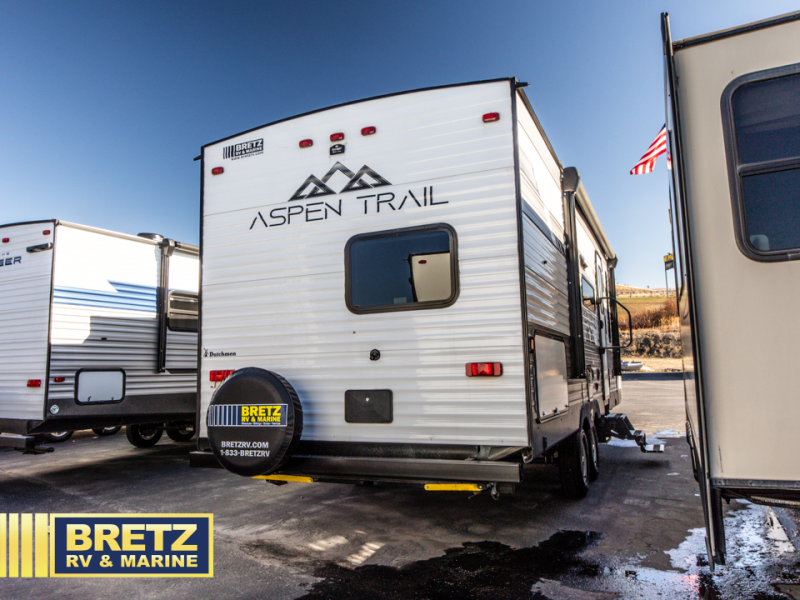 You will find more standard features and more value in each one of these Dutchmen RV Aspen Trail travel trailers! The aerodynamic front profile not only makes them easier to tow, but also more fuel efficient. Experience all of the power with power stabilizers, a power awning, and a power tongue jack for easy setting up and breaking down. The fully enclosed underbelly provides an extra layer of protection for your unit's vitals so you can camp further into the year. With aluminum steps, you will have a solid platform of stability as you enter and exit, plus they are easy to expand or store away. The backup camera prep offers peace of mind as you navigate your unit and the upgraded Beauflor lino throughout will be easy to clean so you don't have to worry about mud getting tracked inside. Come find the one that best suits your needs today!