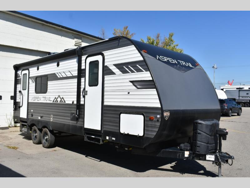 You will find more standard features and more value in each one of these Dutchmen RV Aspen Trail travel trailers! The aerodynamic front profile not only makes them easier to tow, but also more fuel efficient. Experience all of the power with power stabilizers, a power awning, and a power tongue jack for easy setting up and breaking down. The fully enclosed underbelly provides an extra layer of protection for your unit's vitals so you can camp further into the year. With aluminum steps, you will have a solid platform of stability as you enter and exit, plus they are easy to expand or store away. The backup camera prep offers peace of mind as you navigate your unit and the upgraded Beauflor lino throughout will be easy to clean so you don't have to worry about mud getting tracked inside. Come find the one that best suits your needs today!