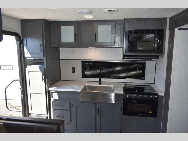 You will love all that this Aspen Trail travel trailer has to offer! From the front master suite which features a queen-size bed and wardrobes on either side to the rear kitchen which features a three-burner range with oven and glass cover, you will have everything you need for great comfort. You will also enjoy how convenient it will be for everyone to access the dual entry bath, and the sofa with EZ storage is located right next to the 7 cu. ft. refrigerator so that you can grab your favorite beverage without even getting up!