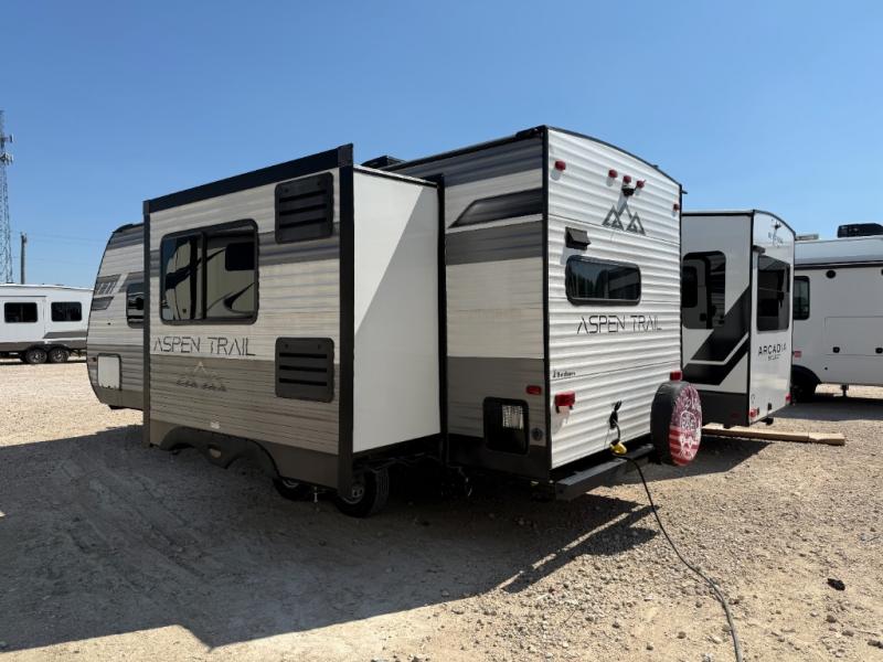 You will find more standard features and more value in each one of these Dutchmen RV Aspen Trail travel trailers! The aerodynamic front profile not only makes them easier to tow, but also more fuel efficient. Experience all of the power with power stabilizers, a power awning, and a power tongue jack for easy setting up and breaking down. The fully enclosed underbelly provides an extra layer of protection for your unit's vitals so you can camp further into the year. With aluminum steps, you will have a solid platform of stability as you enter and exit, plus they are easy to expand or store away. The backup camera prep offers peace of mind as you navigate your unit and the upgraded Beauflor lino throughout will be easy to clean so you don't have to worry about mud getting tracked inside. Come find the one that best suits your needs today!
