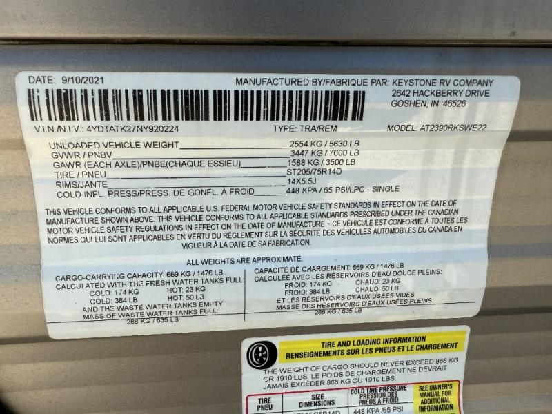 Used 2022 Dutchmen RV Aspen Trail 2390RKSWE Travel Trailer
