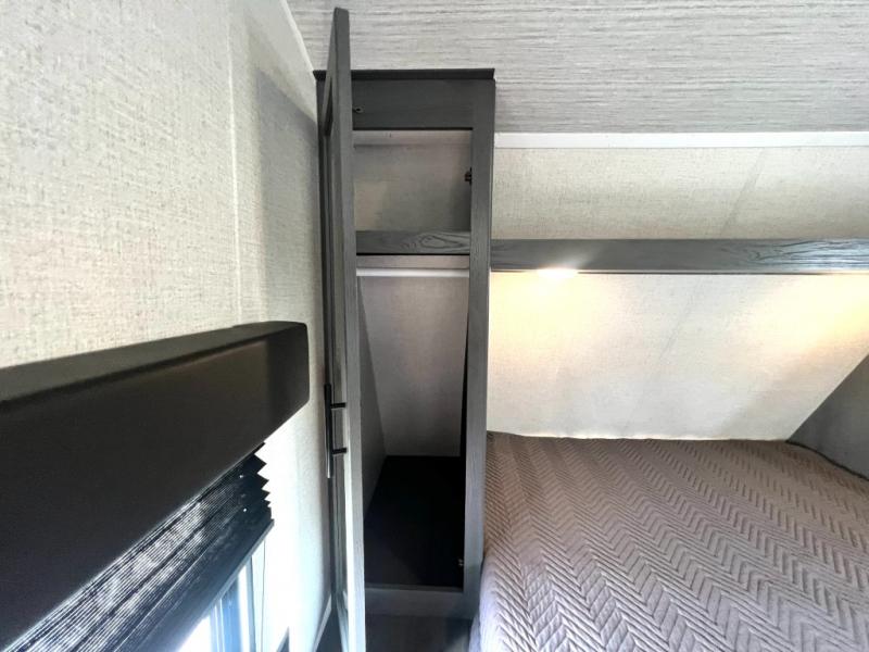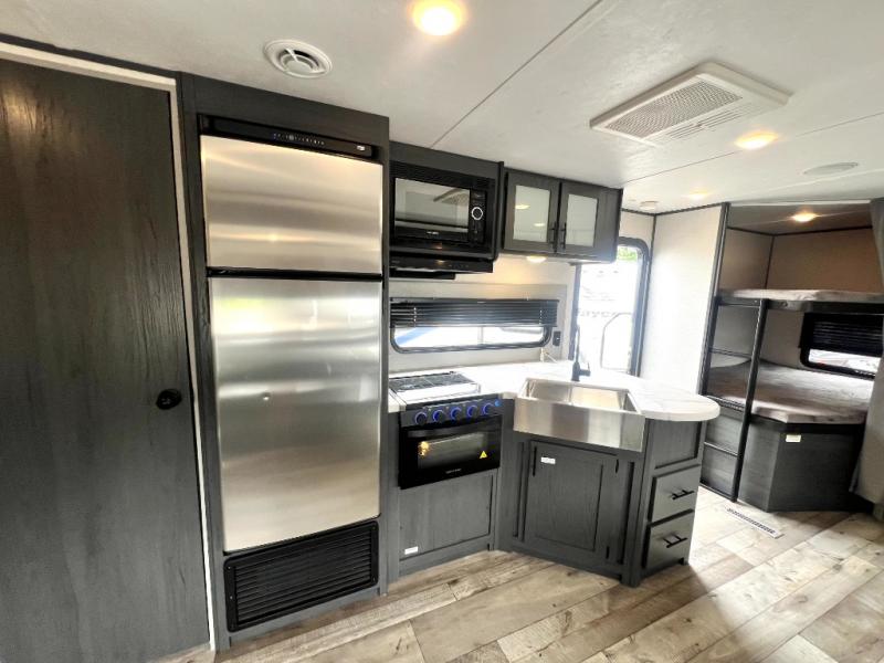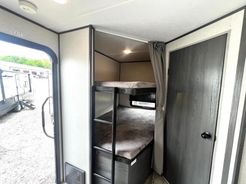 You won't know where to begin with this Aspen Trail travel trailer that has two entry doors! The kids will love sleeping on the rear set of double-size bunks, and you will love having your own private retreat in the front bedroom that has a queen-size Everdream mattress always waiting for you. The U-shaped dinette and sofa rest upon the large slide which provides extra moving space. Grab a snack from the large pantry and head outdoors to see what the chef is grilling up at the outdoor kitchen!