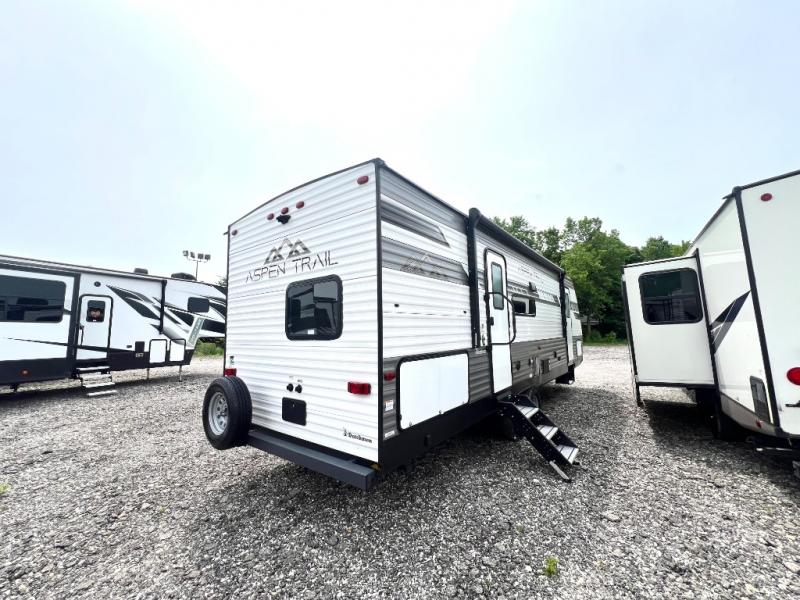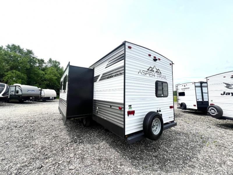 You will find more standard features and more value in each one of these Dutchmen RV Aspen Trail travel trailers! The aerodynamic front profile not only makes them easier to tow, but also more fuel efficient. Experience all of the power with power stabilizers, a power awning, and a power tongue jack for easy setting up and breaking down. The fully enclosed underbelly provides an extra layer of protection for your unit's vitals so you can camp further into the year. With aluminum steps, you will have a solid platform of stability as you enter and exit, plus they are easy to expand or store away. The backup camera prep offers peace of mind as you navigate your unit and the upgraded Beauflor lino throughout will be easy to clean so you don't have to worry about mud getting tracked inside. Come find the one that best suits your needs today!