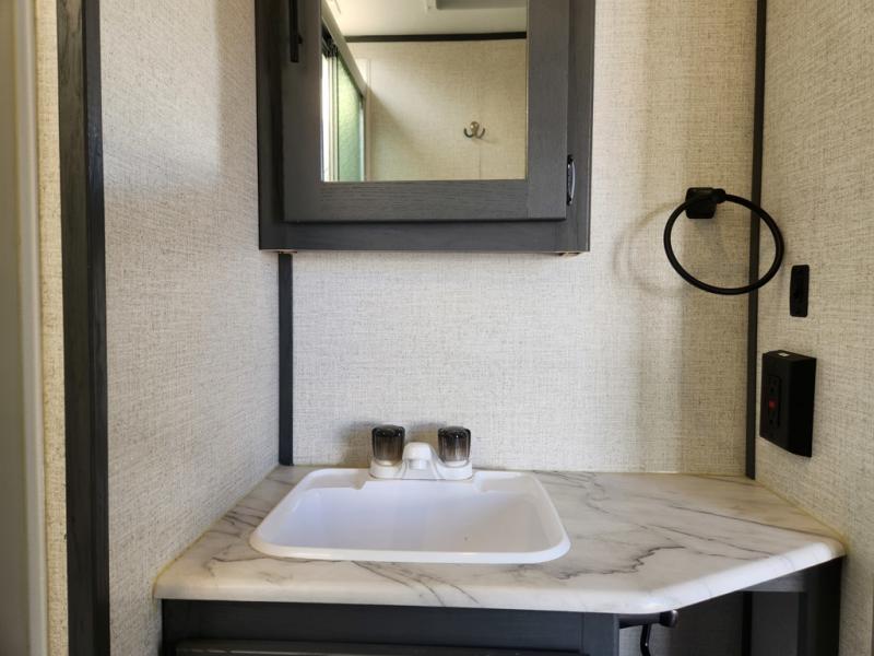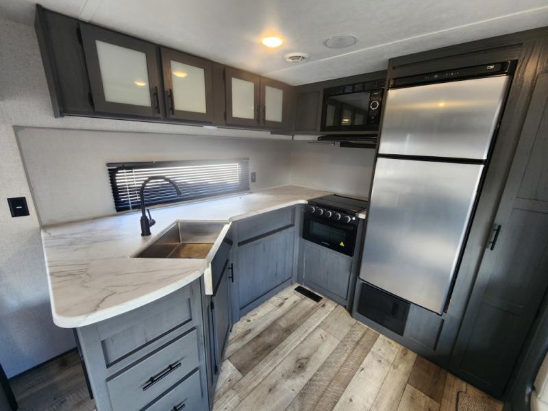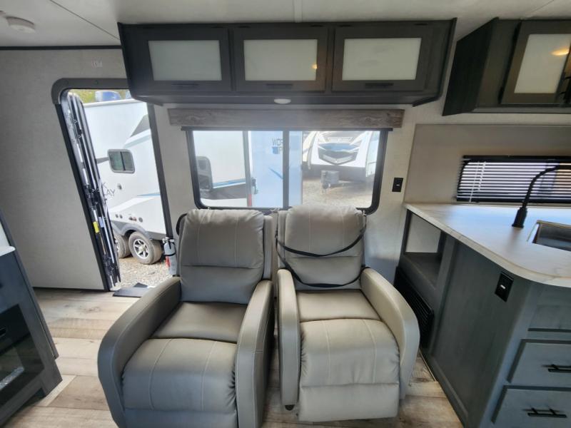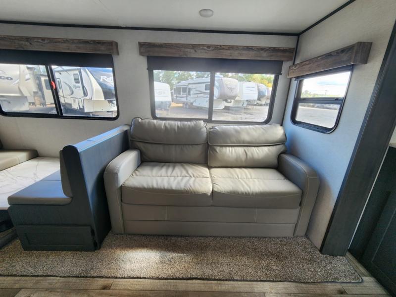 When you're ready for a camping experience of a lifetime, check out this Aspen Trail travel trailer! The rear kitchen makes it easier for you to move around and create your best meals, and then you can comfortably enjoy those meals at the booth dinette which can transform into an extra sleeping space when needed. When mother nature rains on your parade, you can relax inside on either one of the two recliner chairs or lie down on the sofa with EZ storage. The full bathroom makes it easy for everyone to stay clean, and the skylight above the shower adds natural lighting!