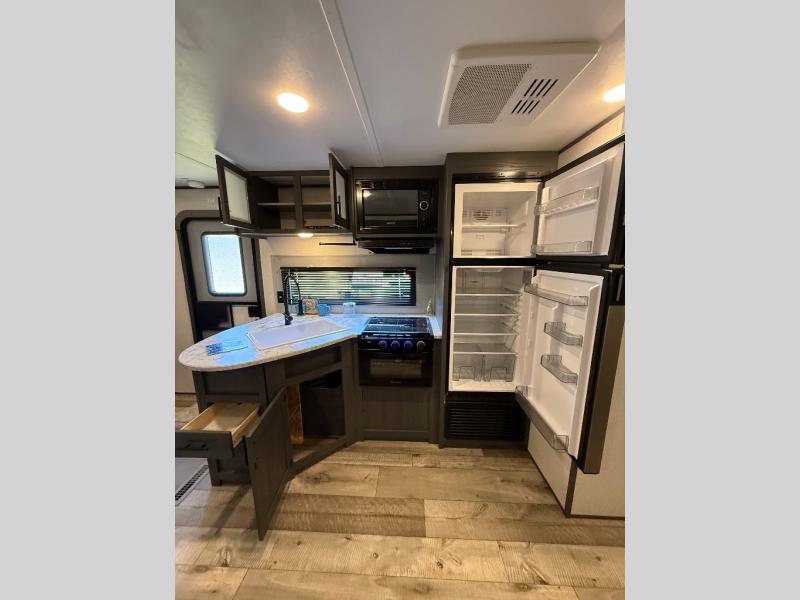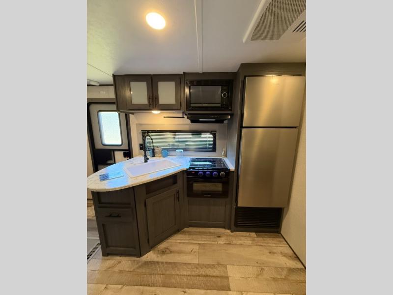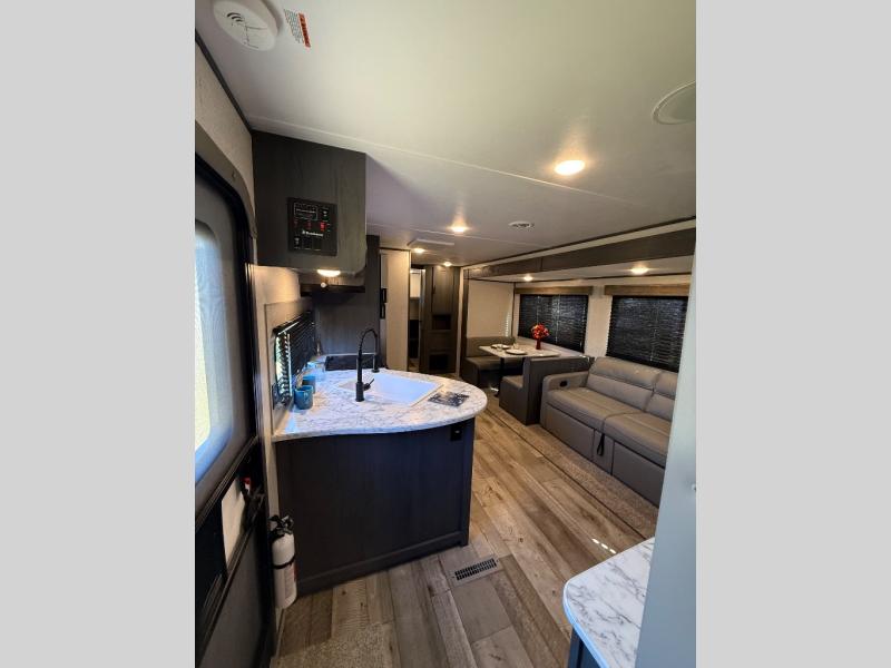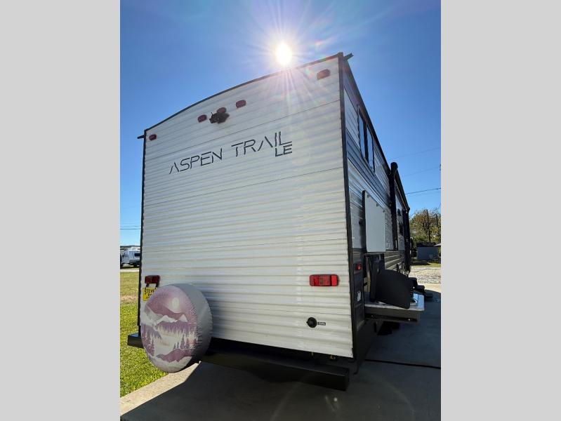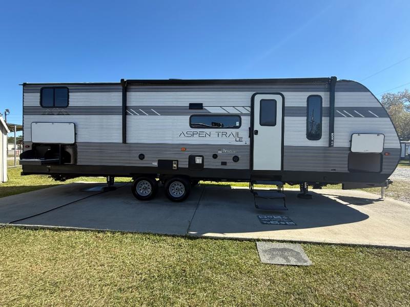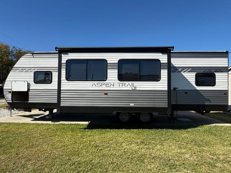 You will find more standard features and more value in each one of these Dutchmen RV Aspen Trail travel trailers! The aerodynamic front profile not only makes them easier to tow, but also more fuel efficient. Experience all of the power with power stabilizers, a power awning, and a power tongue jack for easy setting up and breaking down. The fully enclosed underbelly provides an extra layer of protection for your unit's vitals so you can camp further into the year. With aluminum steps, you will have a solid platform of stability as you enter and exit, plus they are easy to expand or store away. The backup camera prep offers peace of mind as you navigate your unit and the upgraded Beauflor lino throughout will be easy to clean so you don't have to worry about mud getting tracked inside. Come find the one that best suits your needs today!